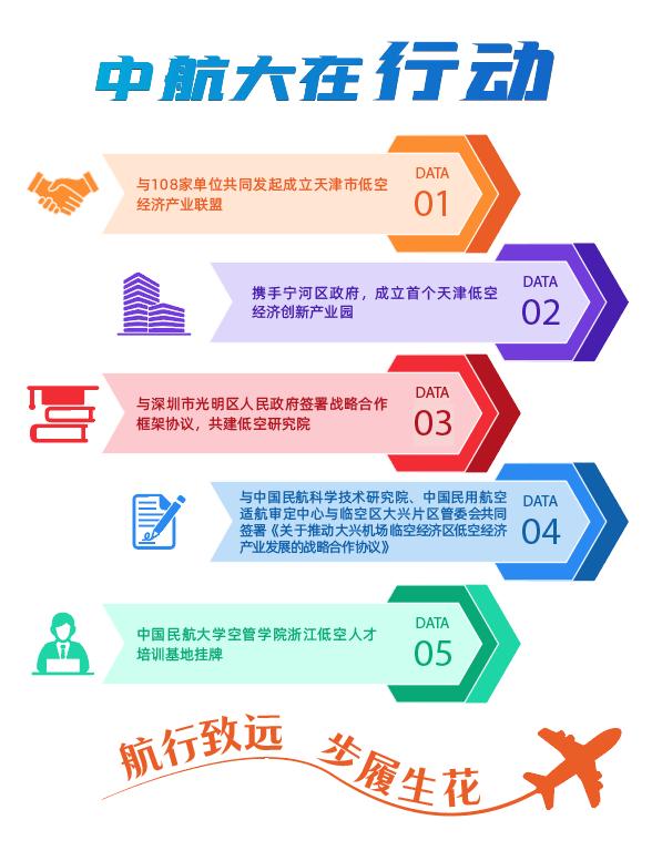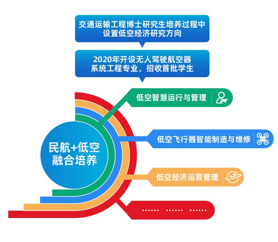 当前,中国民航大学依托已有的“顶尖安全、一流交通、知名航宇、精品信息、交叉理学、特色文管”民航顶尖学科生态,在交通运输工程博士研究生培养过程中设置低空经济研究方向;开设无人驾驶航空器系统工程专业;鼓励各学院充分利用优势专业赋能低空经济人才培养,打造低空智慧运行与管理、低空飞行器智能制造与维修、低空经济运营管理等“民航基础知识+低空专业知识”相融合的人才培养模式。与此同时,学校积极“破圈”,与多地政府、科研机构签署战略协议,发起成立天津市低空经济产业联盟,与天津市宁河区政府共建天津首个低空经济创新产业园,与深圳市光明区共建低空研究院,与中国民航科学技术研究院、中国民用航空适航审定中心与临空区大兴片区管委会共同签署《关于推动大兴机场临空经济区低空经济产业发展的战略合作协议》,挂牌中国民航大学空中交通管理学院浙江低空人才培训基地……