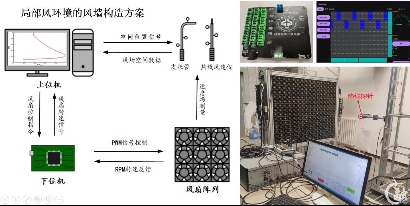 为了解决这些痛点,团队教师刘聪等从2020 年起自主研发了一套名为 “阵列风扇式可控风墙” 的颠覆性设备。这套设备的核心是一面由大量风扇组成的 “墙”,每个风扇都能被独立精确控制。通过协调这些风扇的转速和角度,研究人员就像指挥一支交响乐团,能定量 “编织” 出各种复杂的风场 —— 例如瞬间改变风向和速度的 “风切变”、令人措手不及的 “十字风”,以及无规律的“湍流”,完美复现了现实世界中最危险也最复杂的飞行环境。