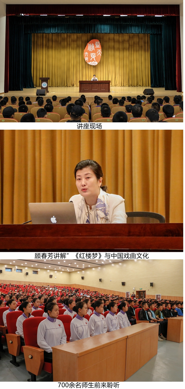 本网讯“开谈不讲《红楼梦》,纵读诗书也枉然。”10月9日,教育部高雅艺术进校园特聘专家、北京大学艺术学院教授顾春芳教授作客“蓝天修身文苑”,主讲“《红楼梦》与中国戏曲文化”,700余名师生来到北院礼堂现场聆听。