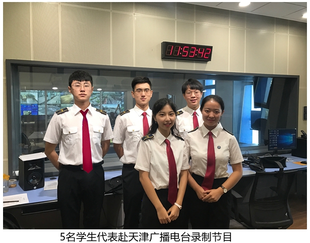 本网讯9月22日,中国民航大学受天津广播电台栏目《1068派》邀请,选派5名学生参加“师哥师姐对你说”——中航大篇的节目直播。校学生会宫思彤、校广播台张杨宗、大学生记者团邹采玲、两航青年社季鹏、大学生安全协会程麟淇作为学生代表与天津广播电台主持人梁彬共同完成本次节目的全程直播。