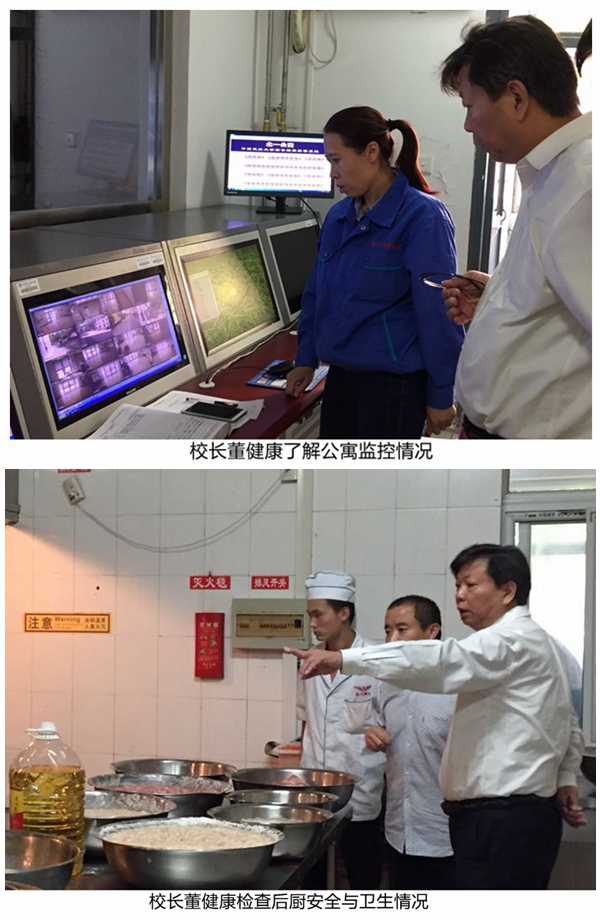 本网讯9月30日,校长董健康带领学校保卫处负责人一同前往食堂、图书馆、学生公寓、青年教师公寓等地开展消防安全突击检查,并要求各单位认真抓好各项安全措施的落实,加强人员教育和管理,突出人防、物防与技防的紧密结合,提升整体安全防范意识,提高岗位胜任能力,确保校园安全稳定。