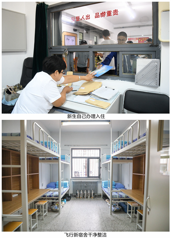 相比历年新生住宿安排工作,现有住宿资源格外紧张。为满足2018级新生住宿需求,经校长办公会研究决定,将全部飞行宿舍由4人间改为6人间,并对原后勤公司员工宿舍北十五公寓进行改造,有效缓解了新生床位紧张的状况。同时,公寓公司积极为飞行新宿舍提供差异化住宿配套设施,其中包括重新定制房间家具、进行配套的电路改造、每间六人宿舍配置塔扇、每栋楼内增配两台热水机。“跨出家门的那一步名为离别,迈入宿舍的那一步名为新生。我们告别在家中养尊处优的状态,迎来的是独立自主。六人间看似拥挤,但是我相信可以培养出六人坚不可摧的兄弟情。”飞行新生韩辰昱如是说。