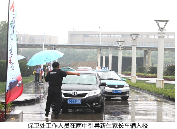 保卫处在开学前数天即全员到岗,进行迎接新生入学工作的准备,提前就新生报到当日可能出现的阴雨天气导致的问题做好应急预案,增派人手进行校园内交通疏导,在校园内施工处设置安全标识,并贴心地为报到新生及其家长们准备了爱心伞。同时,针对可能出现的诈骗分子及潜入学校贩卖劣质三无产品的推销人员,保卫处联系了天津文保总队、新立派出所及机场公安等单位,共同合作在校园内和宿舍楼道中展开巡查工作,为新生保驾护航。