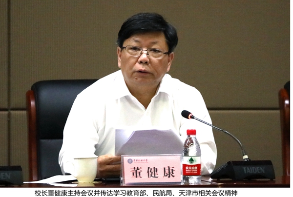 董健康传达2018年教育系统全面从严治党工作视频会议、2018年民航系统全面从严治党工作电视电话会议、中共天津市纪委十一届三次全会等全面从严治党会议精神。他指出,认真学习好、领会透、贯彻实上级有关精神是提高政治站位、牢固树立“四个意识”、坚定“四个自信”、推进学校全面从严治党、深化党风廉政建设和反腐败工作的必然要求。