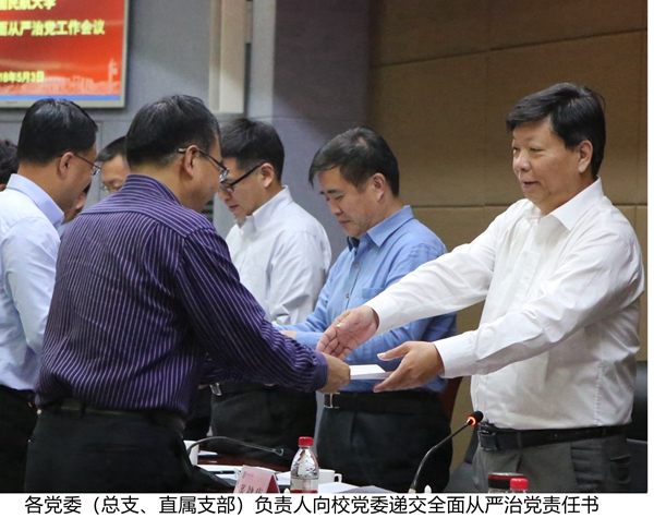 会上,各党委(总支、直属支部)负责人向校党委递交了全面从严治党责任书。