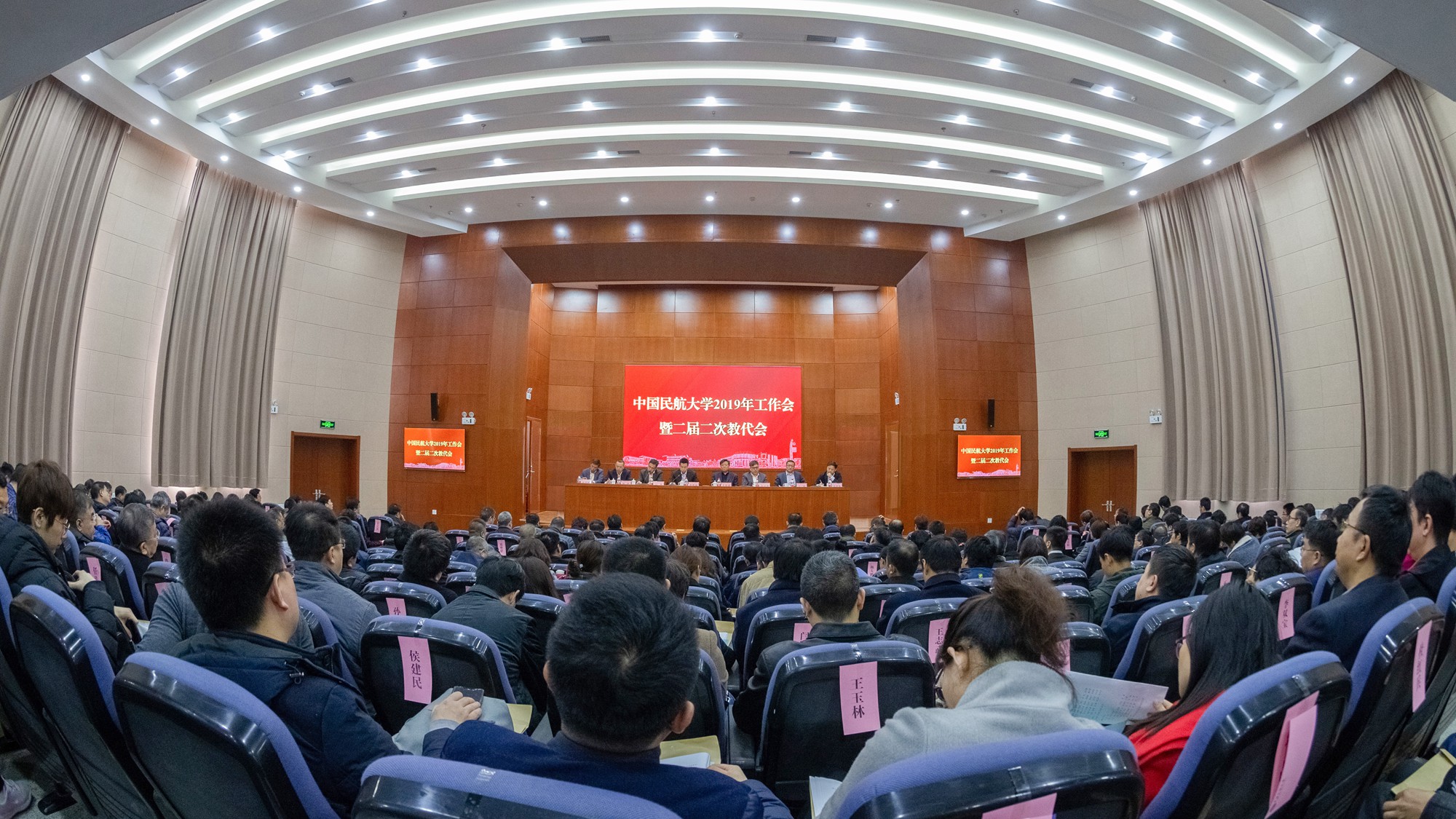 会议传达了2019年全国民航工作会议精神、民航航空安全工作会议精神、全国民航空防安全暨公安保卫工作电视电话会议精神,教育部、天津市教育工作会议精神,天津市委十一届五次全会暨全市经济工作会议精神,审议了2018年教代会、工会工作报告。校领导、处级干部、二三级岗教师、第二届教代会全体代表参加会议。
