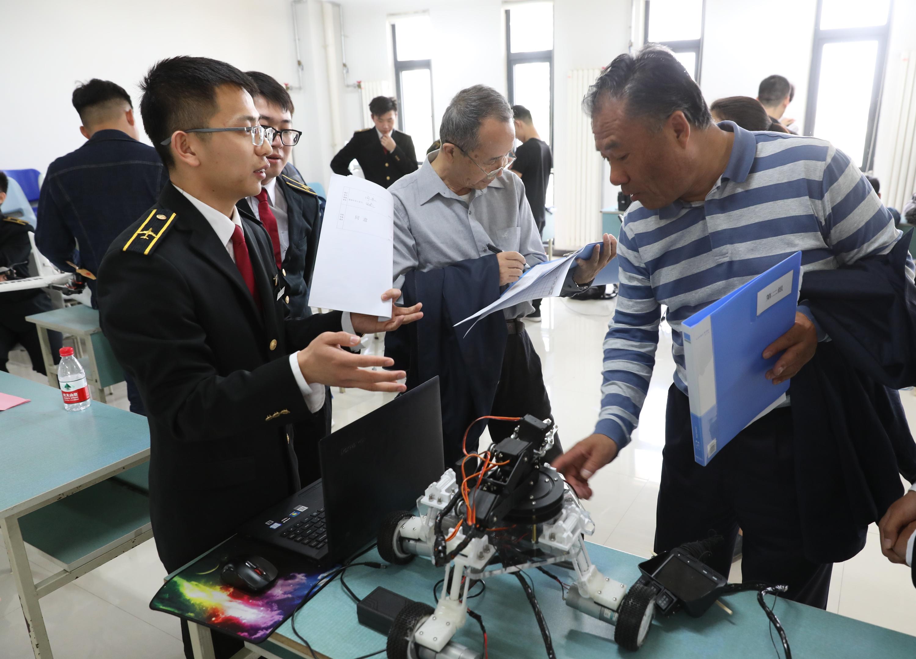 随着机器人和人工智能技术的突破,一个全新的时代到来,机器人更类人、更智能、更专业,机器人技术正在推动各个行业的转型升级。电子信息与自动化学院2016级学生金生智所在小组的结题项目是“球形组合体机器人的研究与基本制作”“项目通过内部遥控器控制球形组合体机器人的运动方式,再配合我们自己编写的通信协议和遥控器就能控制它的运行。”金生智说,“这种机器人日后可用于网络消防救援领域,也可用于军事侦察、环境监测领域。就环境监测领域的应用而言,它可以通过测试环境的温度快速传递环境信息。”