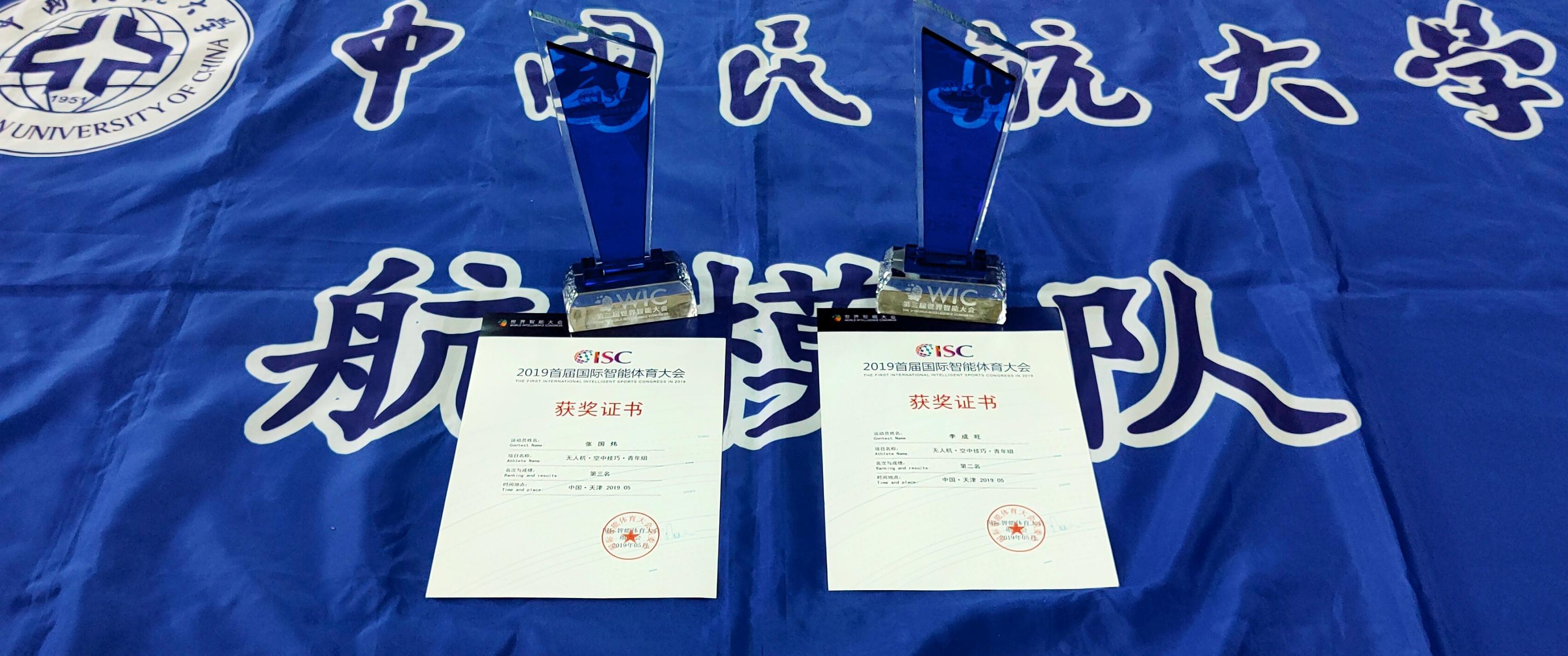 本网讯 日前,2019首届国际智能体育大会在天津海河教育园区举行,中国民航大学航模队6名队员参加了赛事的无人机项目,在经历淘汰赛与排位赛的激烈竞争之后,航空工程学院2018级学生李成旺、张国炜分别斩获第二名、第三名。