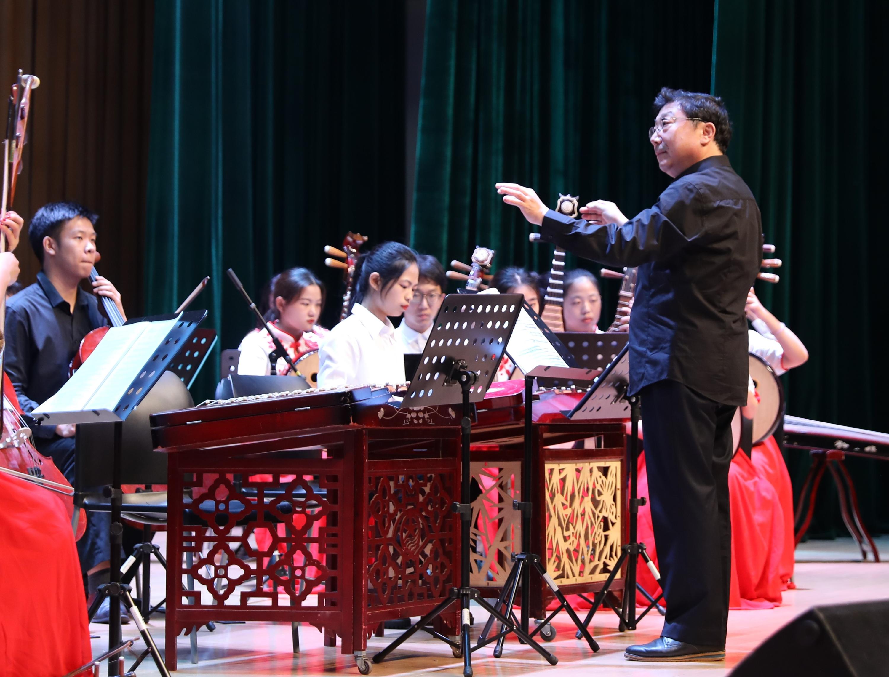 本网讯 悠扬的胡琴,凄美的二胡,激昂的琵琶——民乐声声响彻校园,中华传统文化之美为师生们绽放。日前,中国民航大学民乐团纪念五四运动100周年专场演出在中国民航大学北院礼堂举行。本次演出指挥为国家一级演员于的老师,吸引全校600余名师生到场观看。