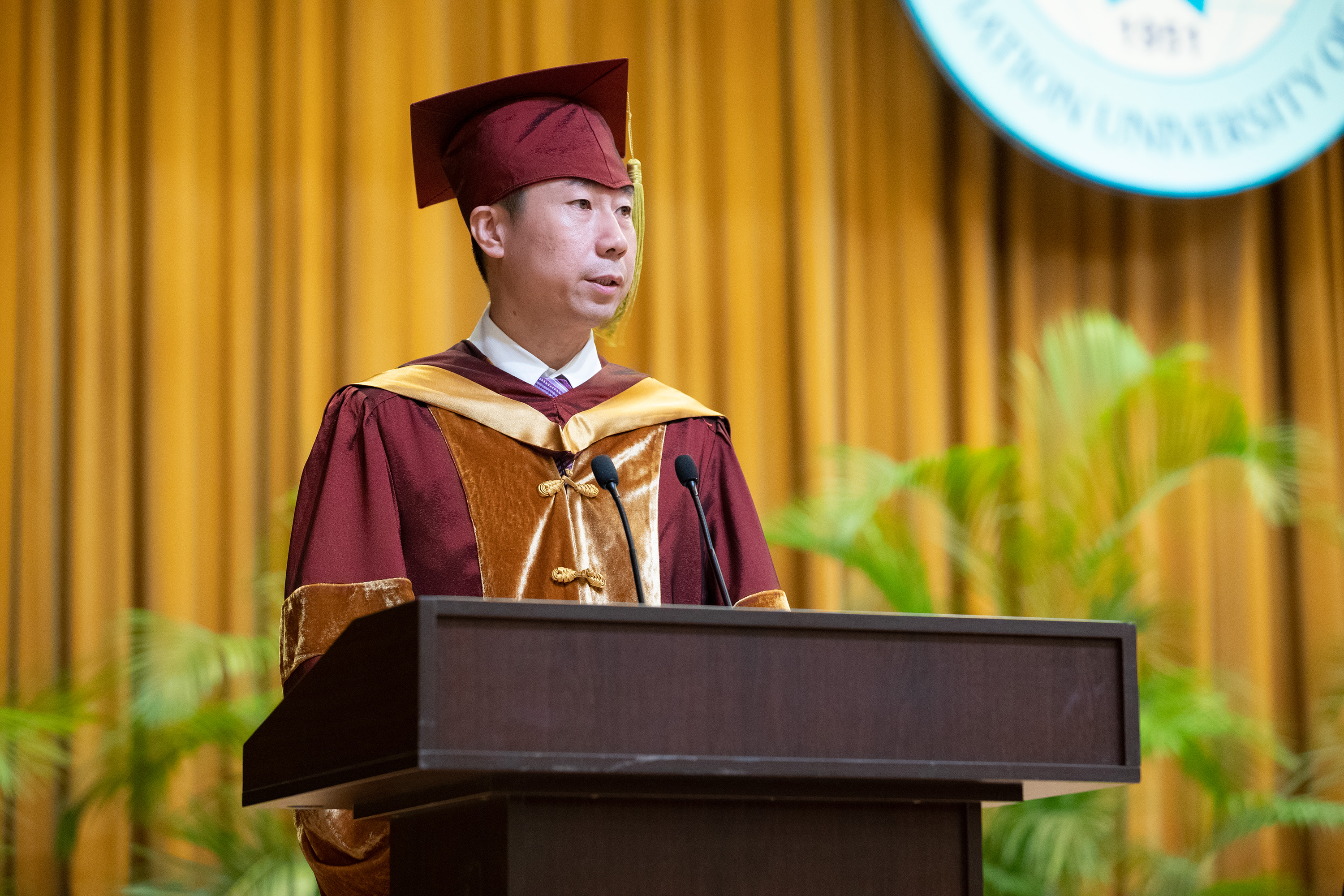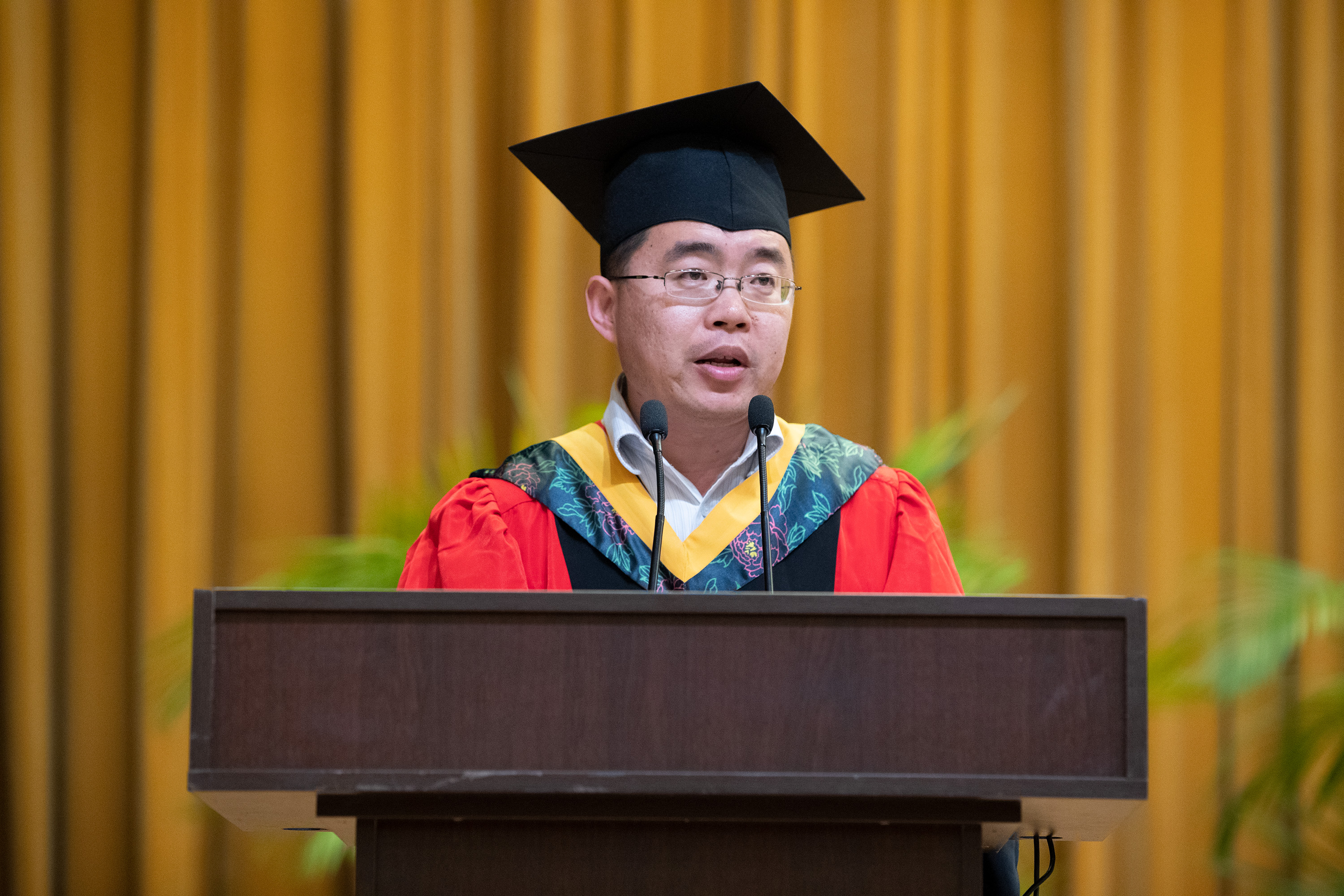 硕士研究生导师代表周青军对2019届的硕士研究生毕业生表示祝贺,他建议毕业生要寻找到一个适合自己的位置,把自己的所学所知所想,将优美的智慧、丰厚的热情献给未来的工作、学习和家庭;学会省察、理解生活,努力探寻和思考人做为主体的价值和意义;守望正义与良知,永葆乐观与激情;有追求梦想的勇气,有抵御打击的韧度;坚守一份责任之心,拥有一份博大之爱,于家于国于社会,甘于奉献,勇于担当;繁忙之中,继续学习和深造,但应勤于锻炼、松弛有度,守护住健康、守护住希望。