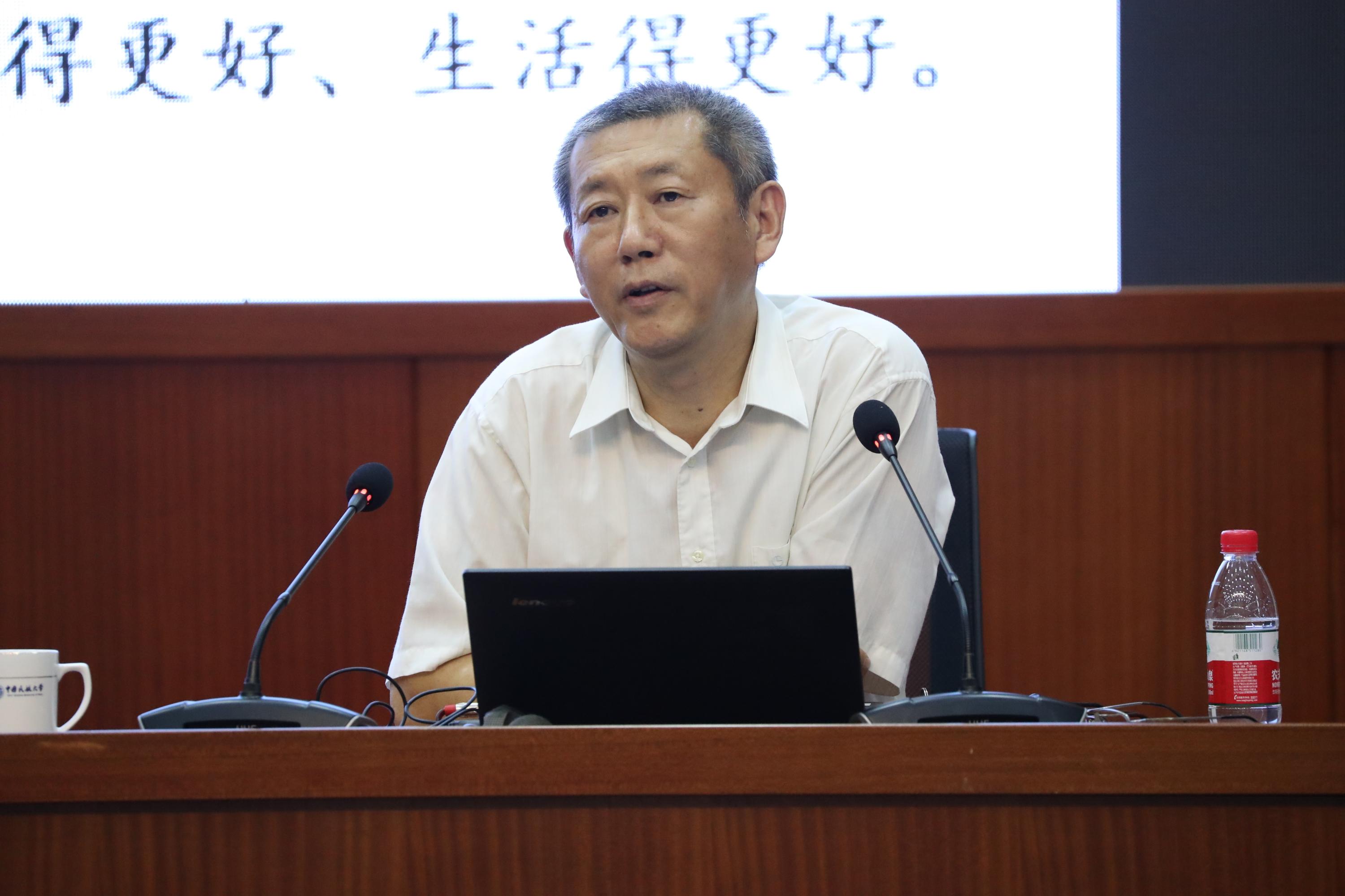 本网讯 6月19日下午,中国民航大学党委理论学习中心组学习扩大会议在图书馆大报告厅举行,专题学习习近平总书记关于教育的重要论述。特邀中国教育电视台原党委书记,三级研究员,北京大学中国特色社会主义理论研究中心兼职研究员,北京市习近平新时代中国特色社会主义思想研究中心研究员张剑作辅导报告。校党委副书记、纪委书记徐政华主持会议,校领导、全体处级以上干部、教工党支部书记、辅导员200余人参加学习。