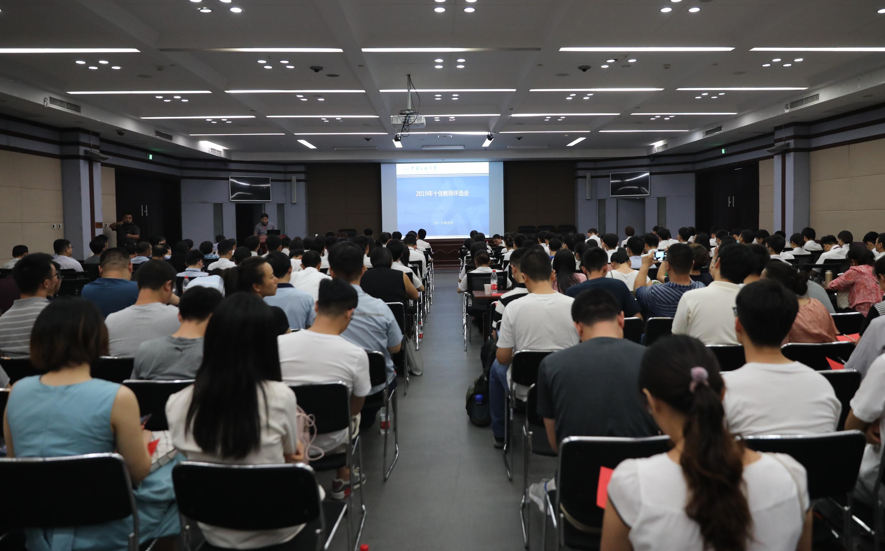 经过院系初选、线上投票等环节产生“十佳教师”候选人,本次评选会分为候选人演讲答辩和评委现场投票两个环节,每位候选人进行5-7分钟演讲答辩,评选采用公开、公正、公平的投票方式,由到场教师代表和学生代表共同评选出2019年度“十佳教师”,评选结果将于近日公布。