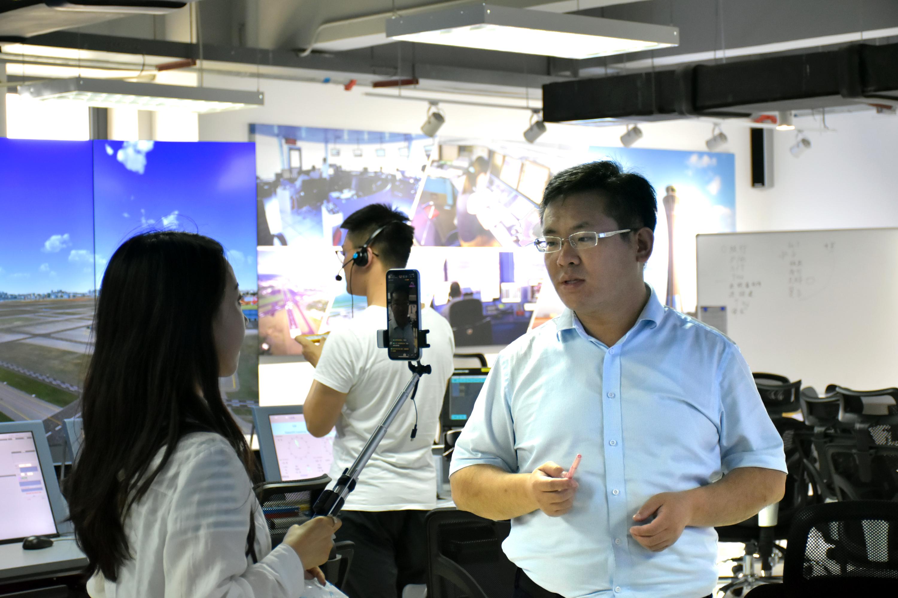 直播团队成员之一、航空工程学院2017级学生程杨表达了参与直播的感受:“非常高兴有机会在直播间里向未来的中航大学子们展示校园风光以及各式各样‘高大上’的硬件设施。与观众们进行直播互动是一件非常有趣的事情,欢迎大家报考中国民航大学,未来一起为民航强国的建设作出贡献。”