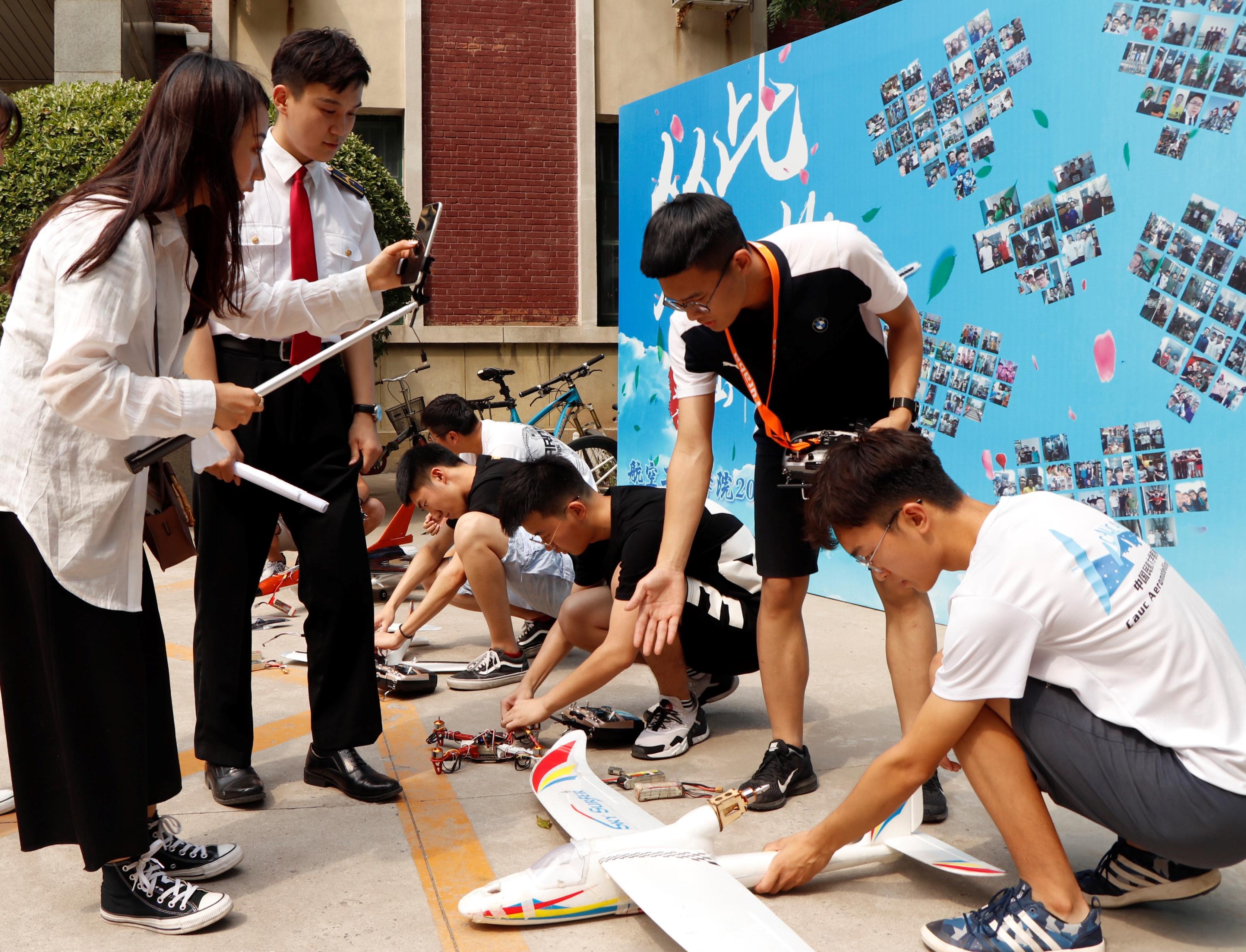 直播团队来到中航大北校区停机坪、模拟机中心、北教三航模队工作室。退役的大飞机、先进的飞行模拟平台以及各式各样的航空模型都牢牢抓住了观众的注意力。在南校区,直播团队游览了社会科学图书馆、体育馆、机场管制实验室、海航科技大厦、明德馆和南二食堂。校园里大大小小的实验室和航空馆藏室都展现在了直播镜头之下。