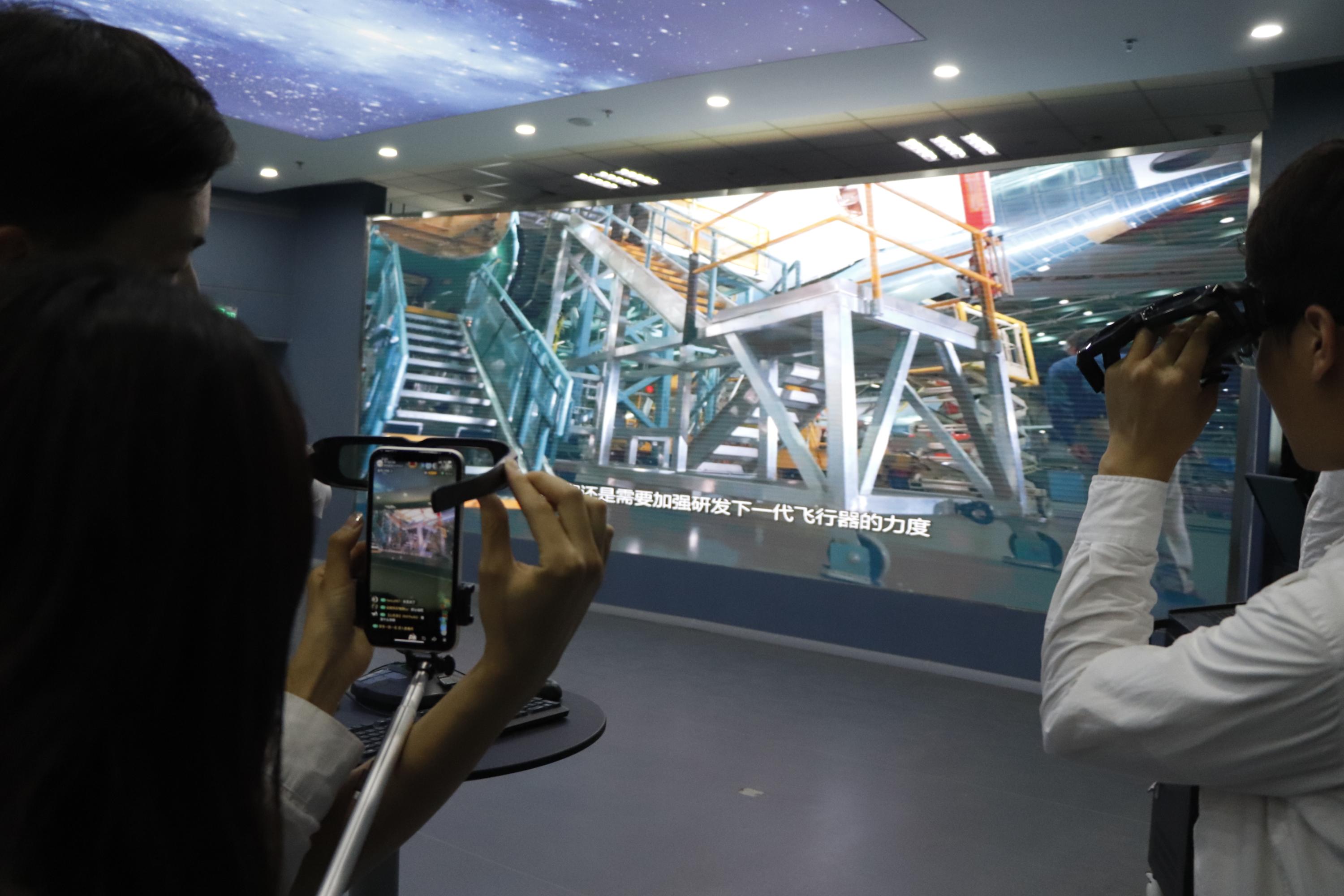 直播团队在国家虚拟实验仿真中心感受大屏3D认知观影