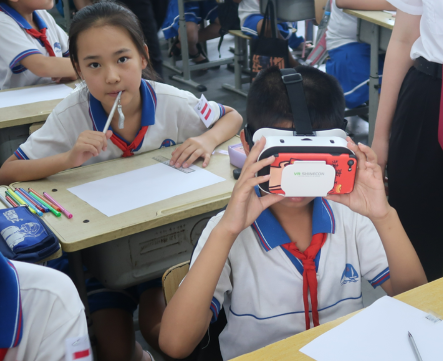 小朋友们感受VR虚拟世界的奇妙
