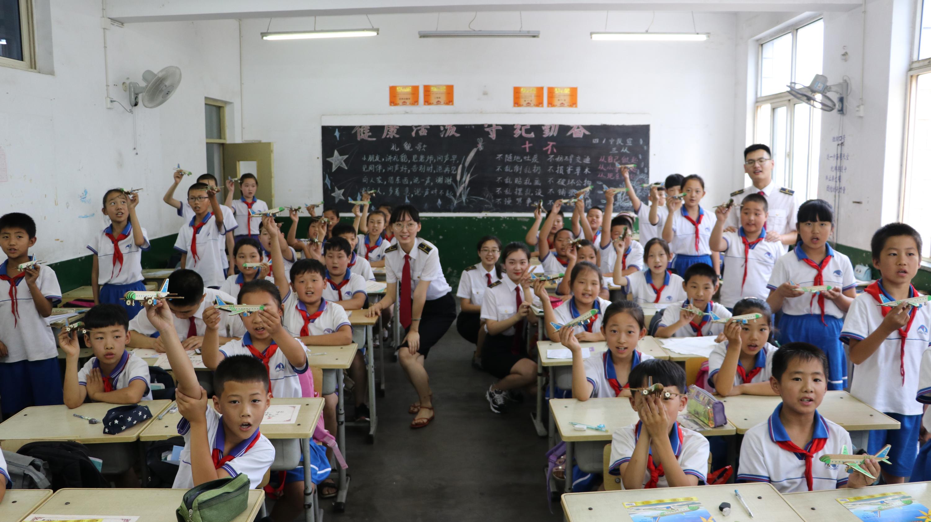 本网讯 日前,中国民航大学计算机科学与技术学院青年实践队13名团学干部,前往天津市宝坻区新安镇第一中心小学开展社会实践活动,为近170名小学生普及智慧民航与5G技术知识。