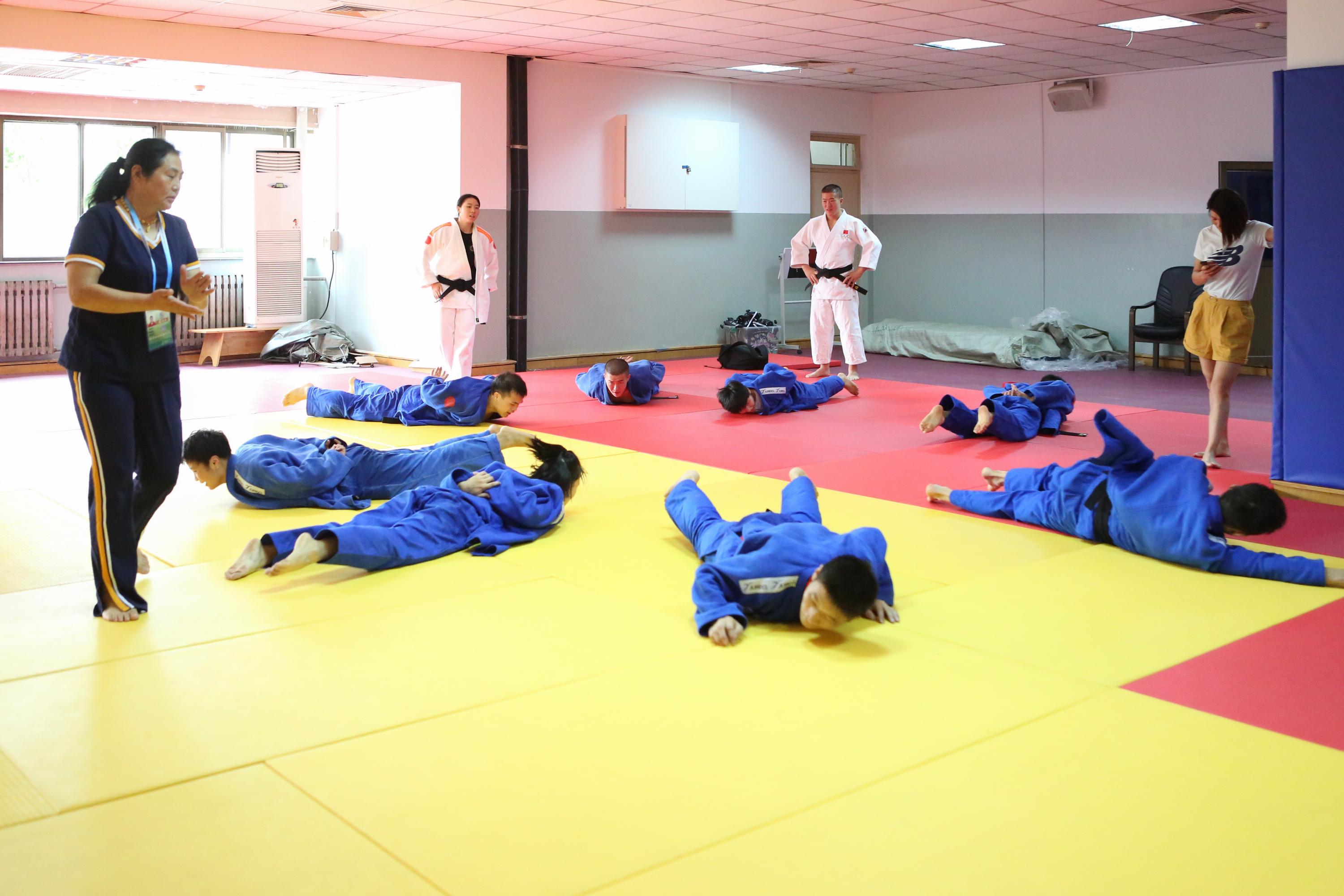 此次场地适应训练主要有准备活动、技术练习、半对抗练习、心肺功能训练等环节,比赛场地以及活动准备室均提前铺好了比赛专用柔道垫,志愿者热心为教练与运动员提供饮用水等服务。