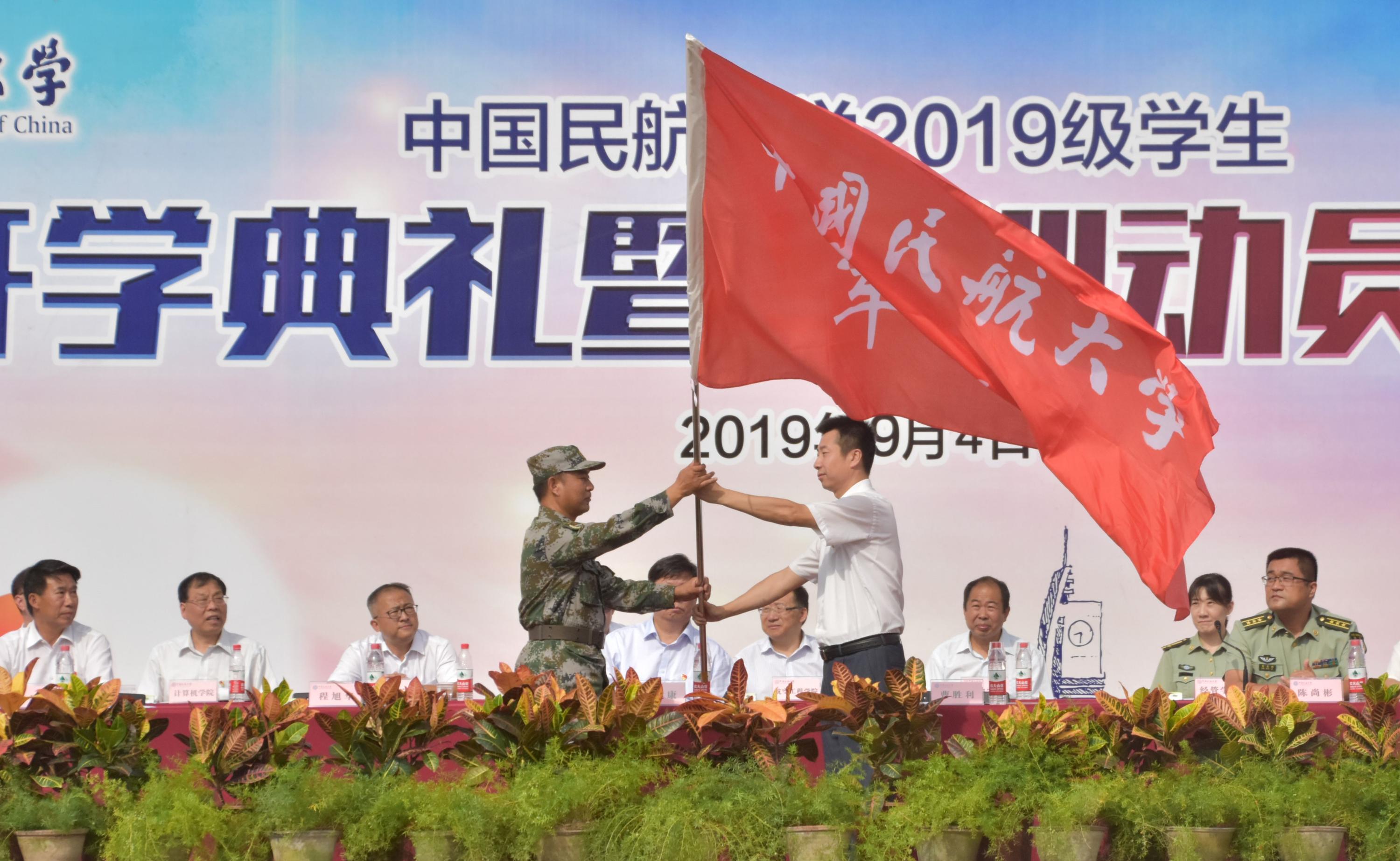 董健康代表学校对2019级全体新生表示衷心祝贺和热烈欢迎,对全体军训官兵表示感谢并致以崇高的敬意。他指出,中国民航大学起源于新中国民航发展的需要,并始终坚守服务行业的初心,承载着“助人成长,助业兴旺”的使命。中国民航大学因民航而兴,在支持行业发展的过程中不断提高承载力并壮大自己。学校与行业共进,必将在民航强国建设中做出更大贡献。他对新生提出三点希望,一要主动适应,学会自律,做初心不改的奋斗者;二要厚植基础,力求创新,做民航强国的建设者;三要敢立大志,勇于担当,做民族复兴的圆梦者。