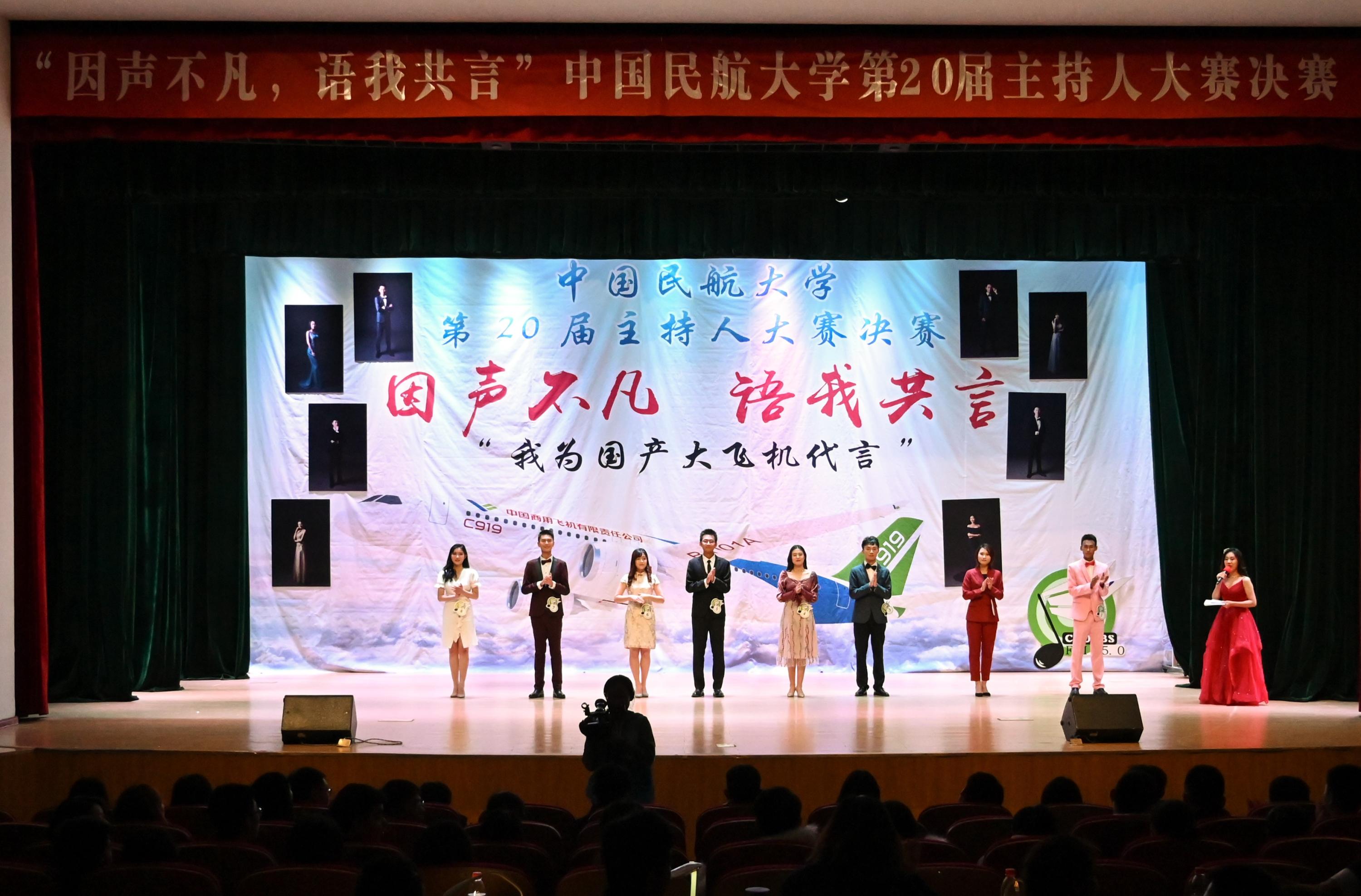 本网讯 11月15日,中国民航大学第20届主持人大赛决赛在北区礼堂成功举行。大赛以“因声不凡·语我共言——我为国产大飞机代言”为主题,吸引800余名师生到场观看。职业技术学院2018级郑凌运获得冠军,人文(法)学院2019级曹毅成、外国语学院2018级张逸航分别获得亚军、季军。