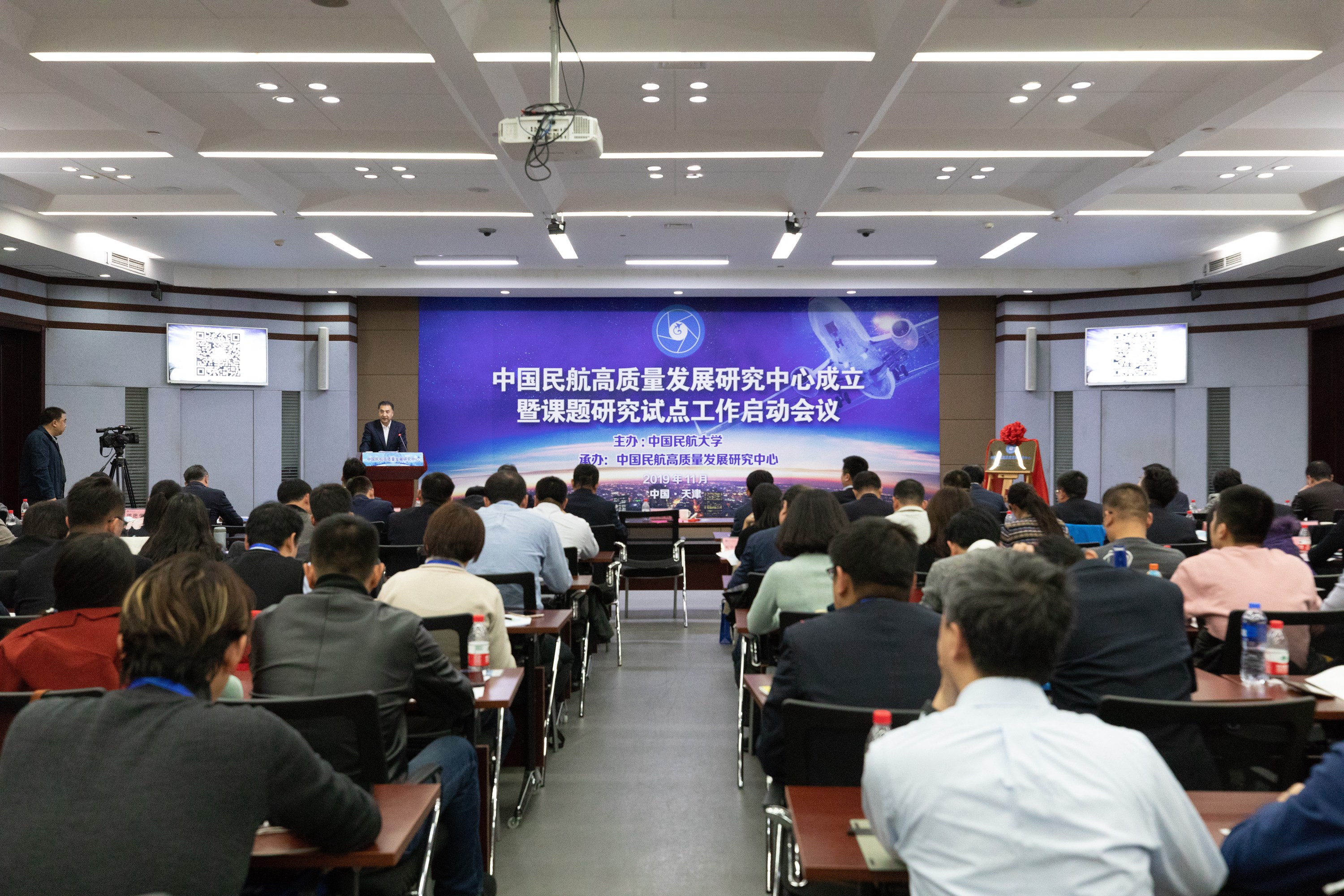 本网讯 11月19日,中国民航高质量发展研究中心成立暨首批课题研究与试点启动工作会在中国民航大学学术交流中心第十会议室召开。民航局副局长董志毅出席会议并讲话,民航局综合司司长刘鲁颂、副司长高俊,政策法规司副司长郭仁刚,财务司副司长熊艳华,人事科教司副司长刘志宏,机场司副司长张锐出席会议,中国民航大学党委书记曹胜利代表学校和高质量发展研究中心发言,中心课题研究与试点单位代表、平台支持单位代表、课题研究与试点项目负责人、以及中国民航大学相关单位负责人和师生代表等近160人参会。中国民航大学副校长白杰主持会议。