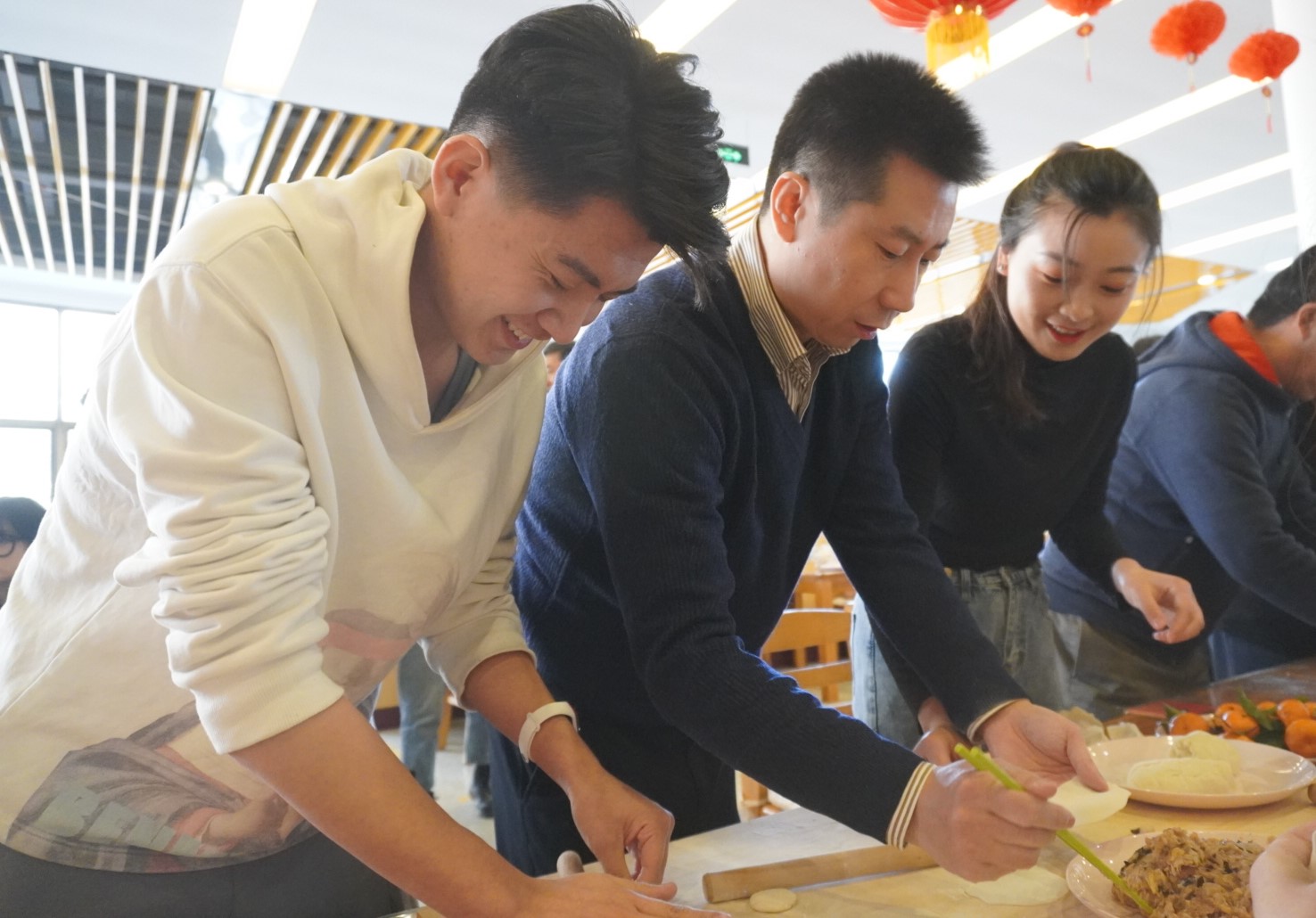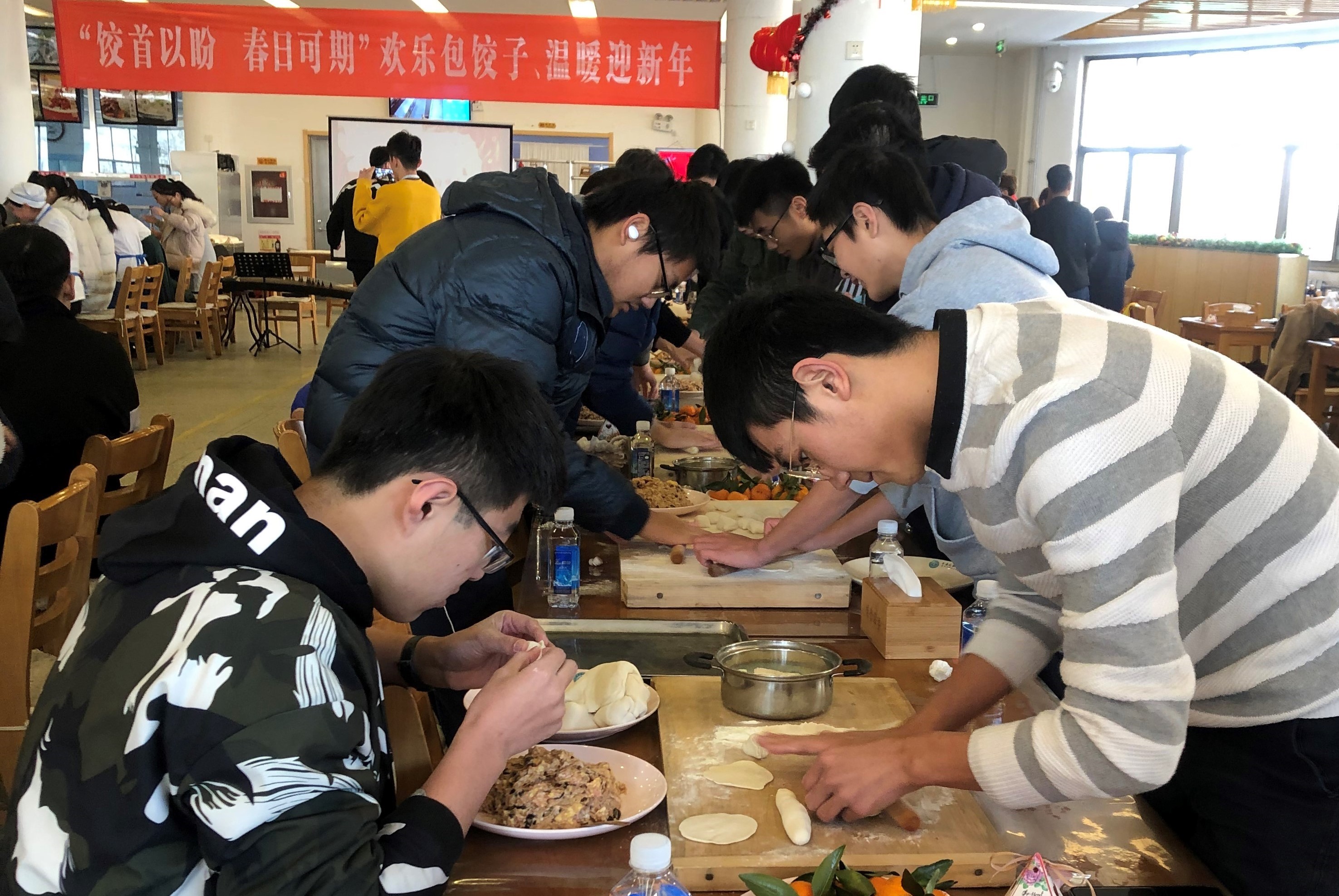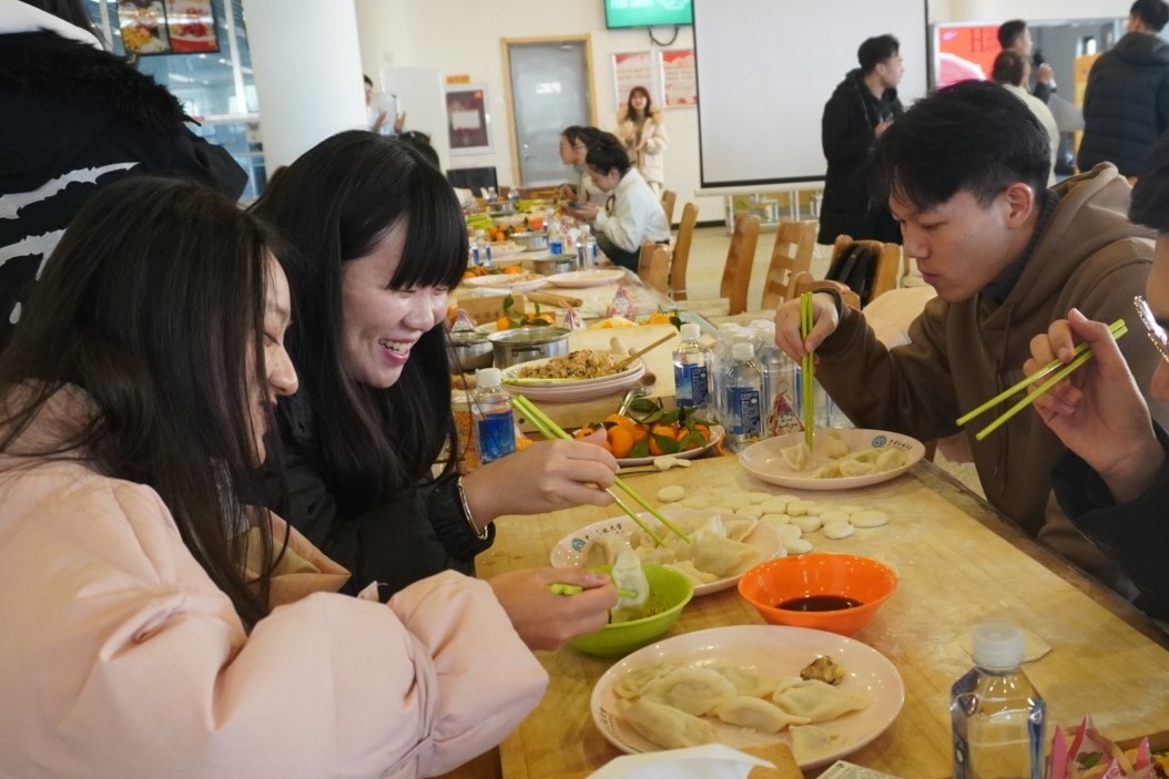 师生共同包饺子庆元旦