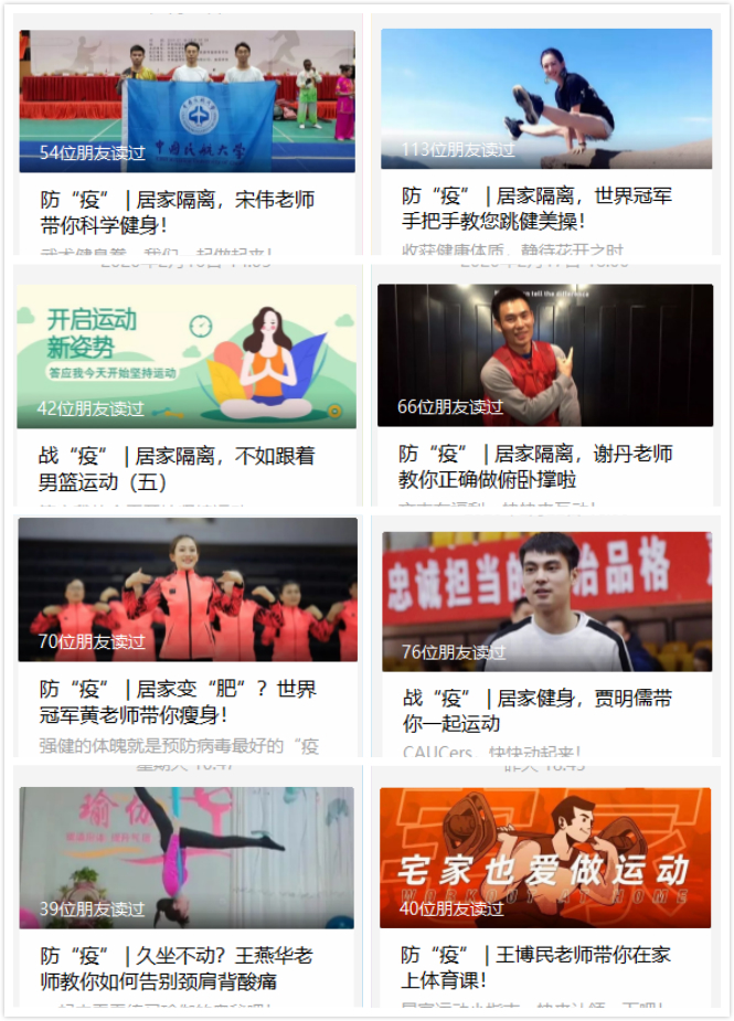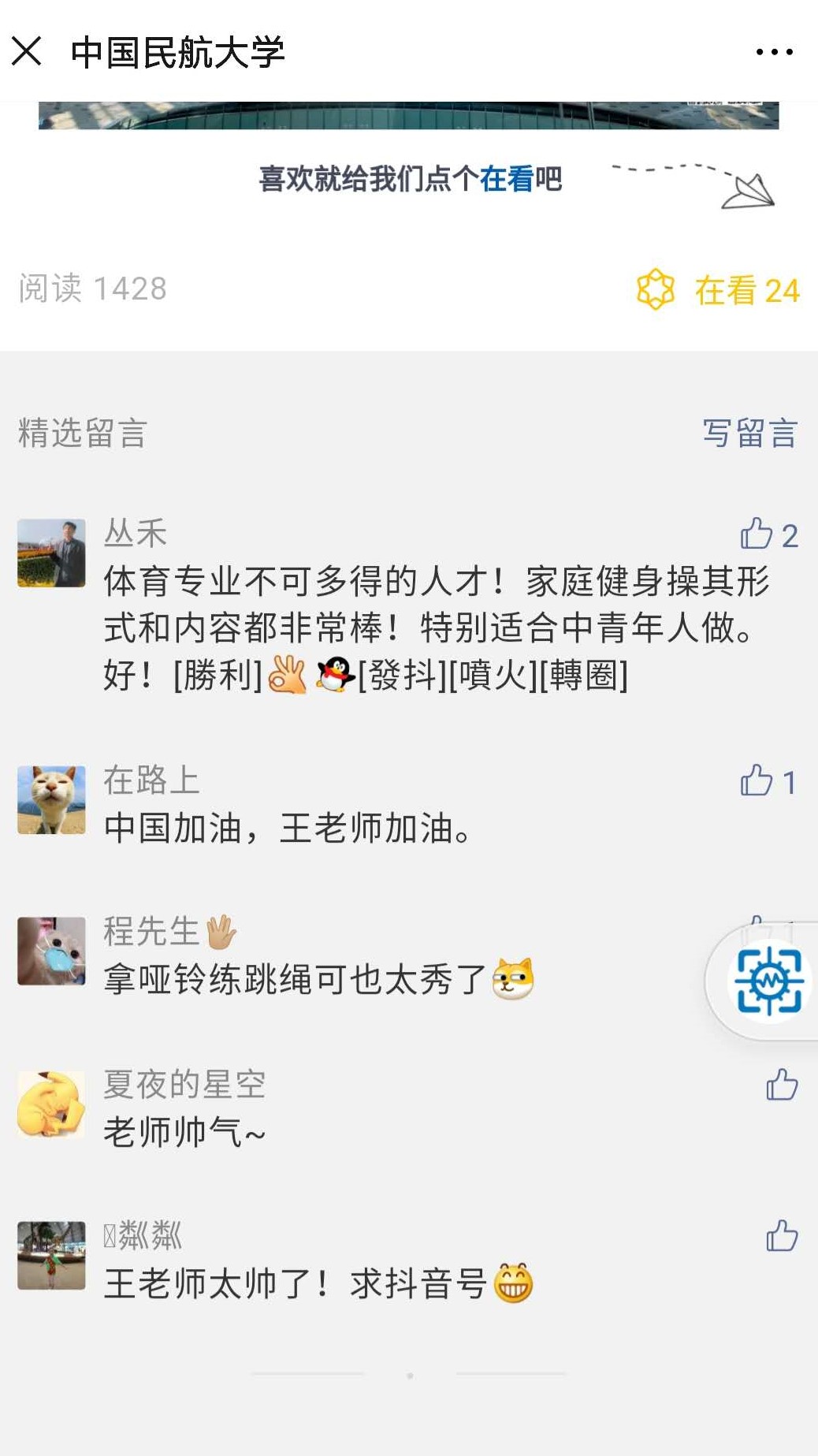 本网讯 连日来,一个名为“居家隔离,xx老师带你科学健身”系列推送刷爆了中航大师生的朋友圈。该栏目为中航大体育部与中航大官方微信联合推出的,以“居家健身”为主题的,让体育教学在新媒体中“活起来”,截至2月25日,累计推出8篇微信推送,每篇受到师生好评。