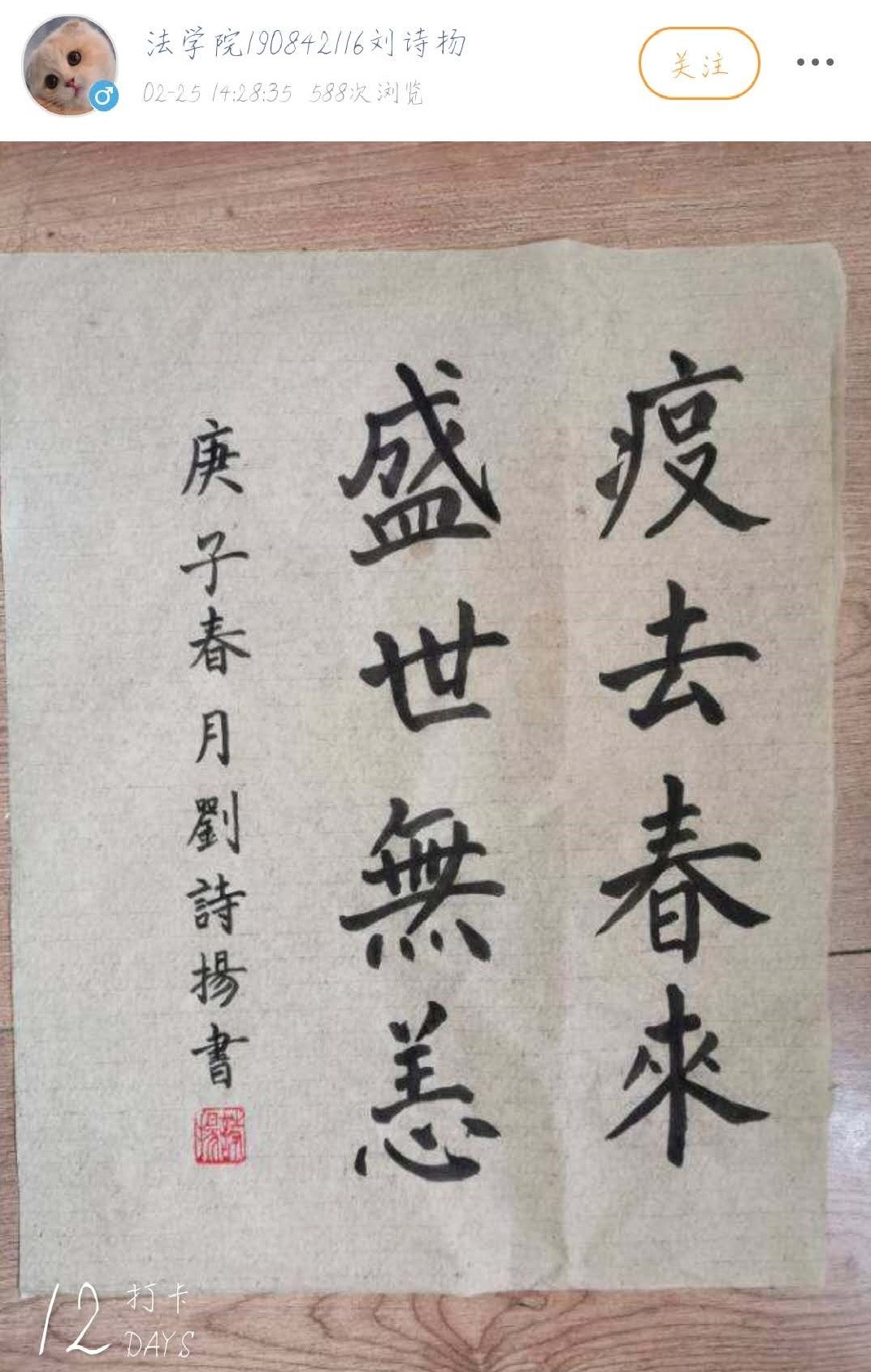 刘诗扬的书法练习打卡记录