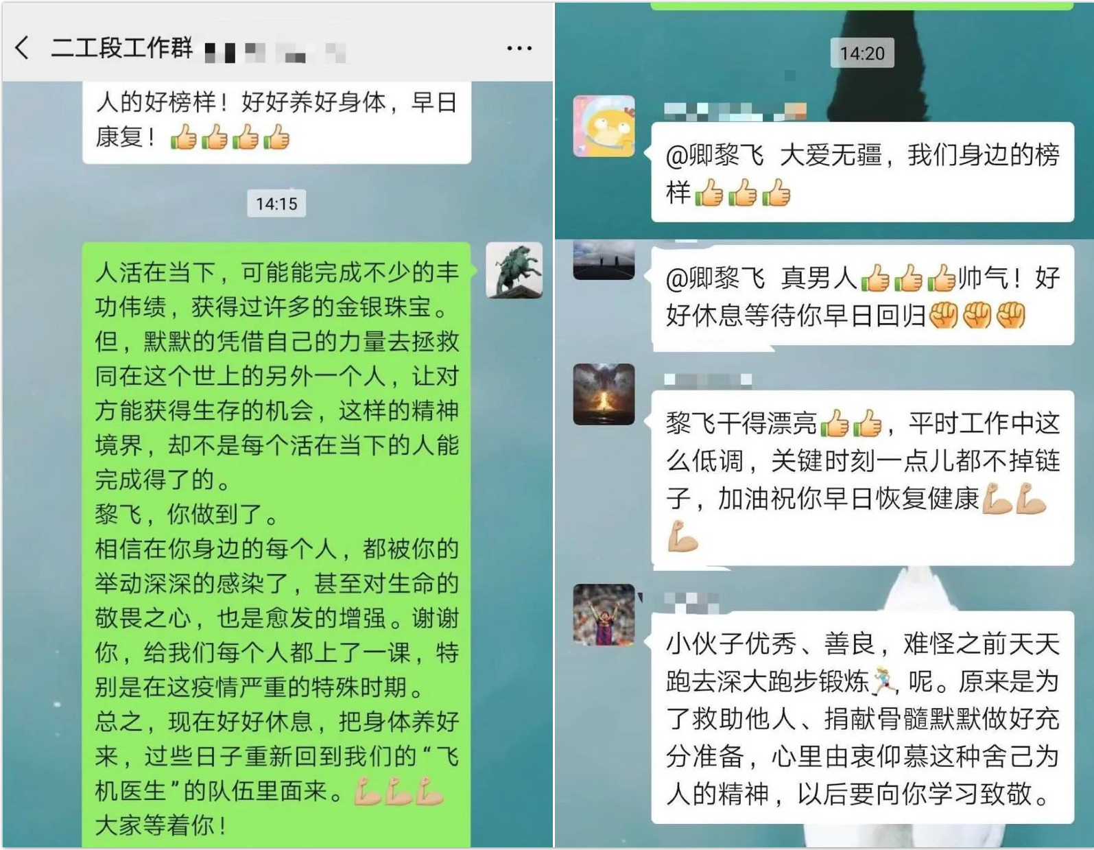 卿黎飞收到同事们的鼓励