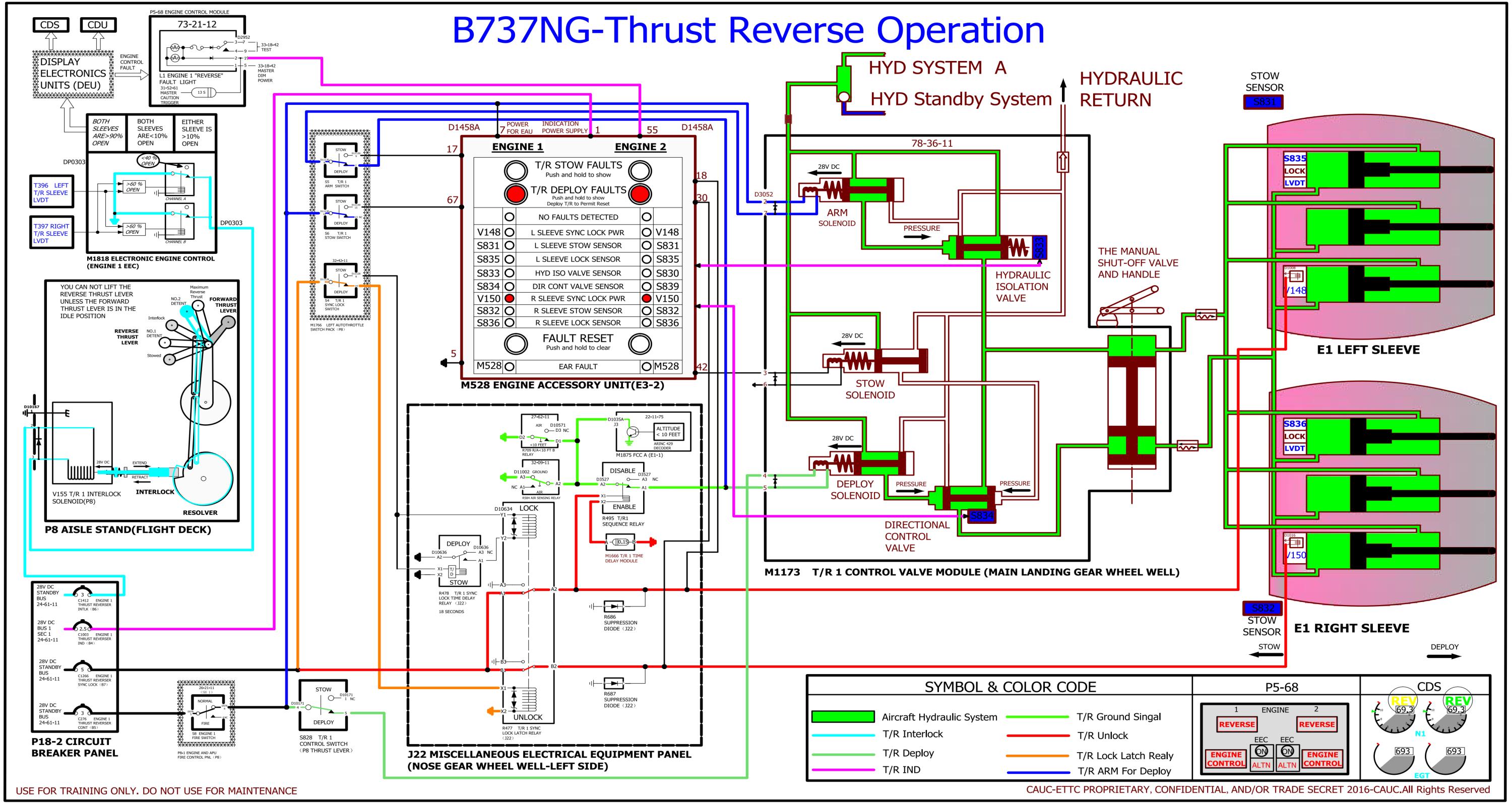 精心准备,积累丰富素材为网络教学奠定基础。近几年,杨军想在前、干在前,持续开展“反推系统”实验室建设和“反推系统”教学改革研究工作,他对反推系统的组成、构造、工作原理及基本控制规律等进行了详细深入的研究。通过对B767反推实验装置的开发,在实验室环境下重新复现了反推系统正常工况和故障工况,与航空维修一线完全接轨。尤其是通过反推系统教学项目的开发,他制作了覆盖全机型的反推系统案例及相关视频,绘制了详细的反推系统工作原理图,并积极发挥网络资源优势,通过微信公众号收集反推系统典型的维修案例、经验以及反推排故教学视频等。这为反推系统的教学积累了大量教学素材,他前期深厚的积累,精心的准备为教好“反推系统排故”网络课程奠定了坚实的基础。