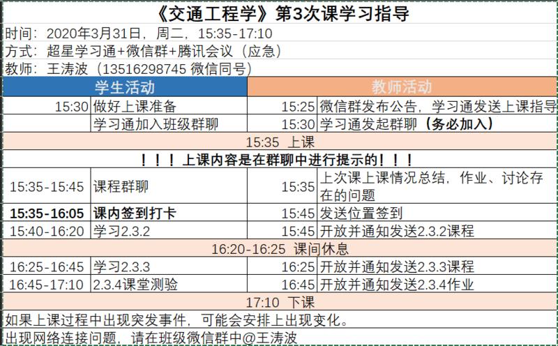 能够得到学生这么高的评价,离不开王涛波对教学过程的细化,细到在什么时间节点做什么事情,并以表格的形式提前通知给学生,这样学生就能按照提前制定的“脚本”进行网络学习。这种精细化的管理方式,使得教师能够更改掌握在线课堂节奏,帮助学生在独立学习的情况下跟上整体的步伐。