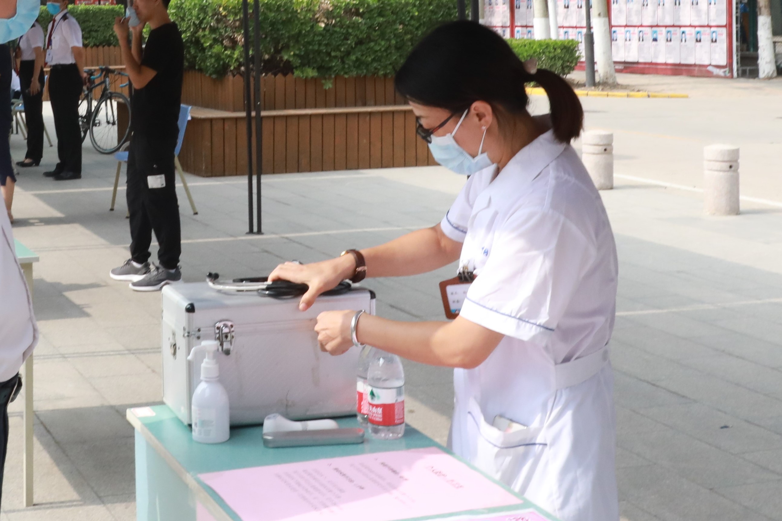 新生们由北校区西门进校,学校设置专门入校通道和临时等候区。入校学生保持1.5米以上安全距离排队,接受体温检测、行李消杀、天津“健康码”状态核查、查看批准返校证书、核酸结果核验(中高风险地区学生)、信息登记、更换口罩、进行“津门战疫”扫码,符合入校条件的学生方可入校。进校门后,新生们在学生志愿者的指引下来到北校区学生中心广场,完成报到手续。