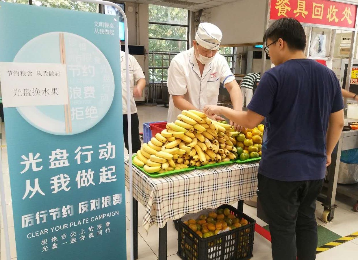 本网讯 9月28日,“光盘行动”活动在南三食堂三楼明明德食堂启动。全校11家食堂开展9月24日至30日为期一周的“光盘送水果浪费人人拍”的活动。活动期间,每位师生员工都可以凭自己的“光盘”免费领取新鲜水果一份,每天累计发放水果1500余份。
