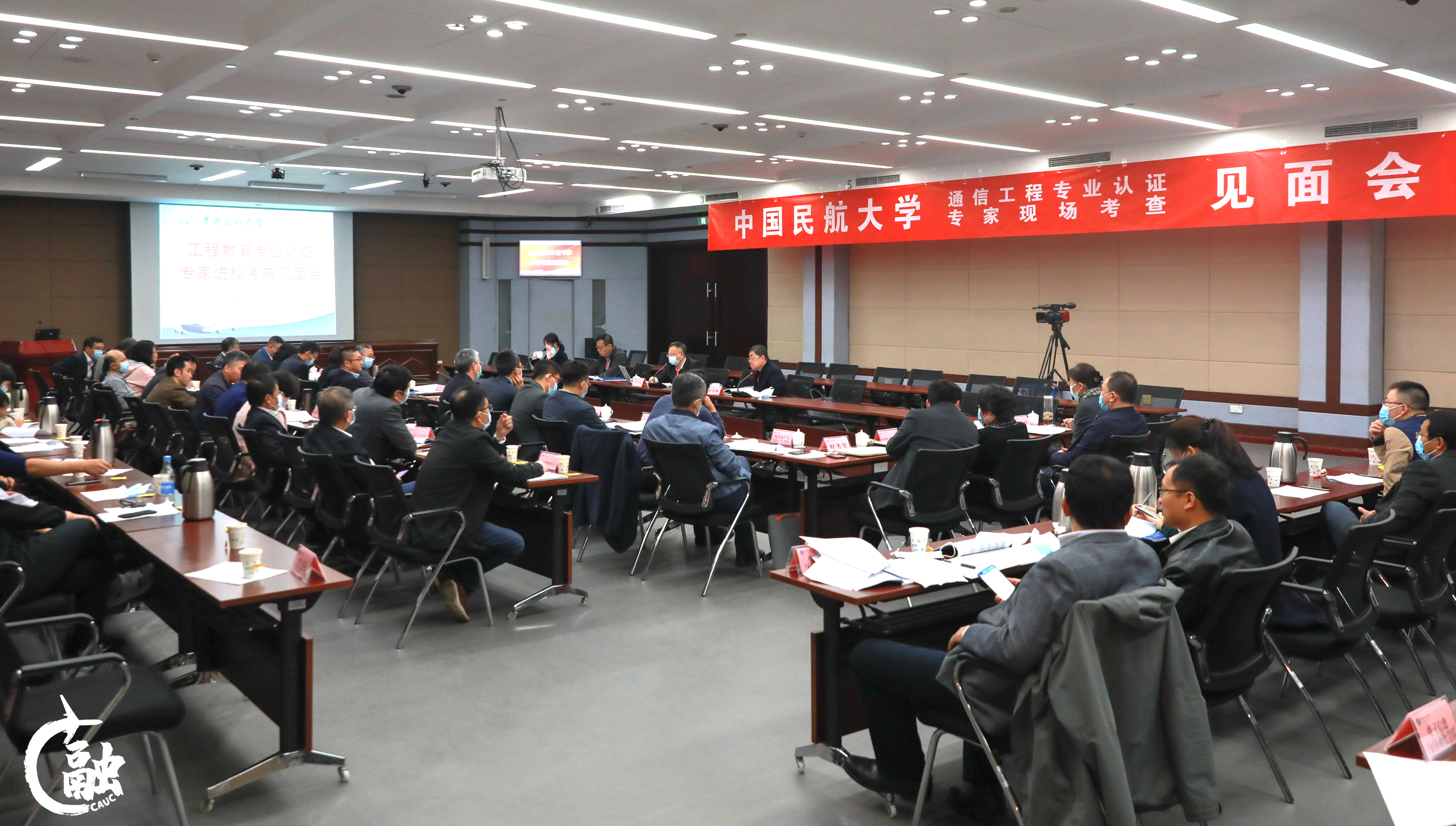 本网讯 10月26日,通信工程专业工程认证专家组入校考察见面会在中国民航大学术交流中心第十会议室召开。审核评估专家组组长黎福海及专家组成员,中国民航大学校长董健康、副校长于剑,电子信息与自动化学院以及学校相关职能部处负责人参加。