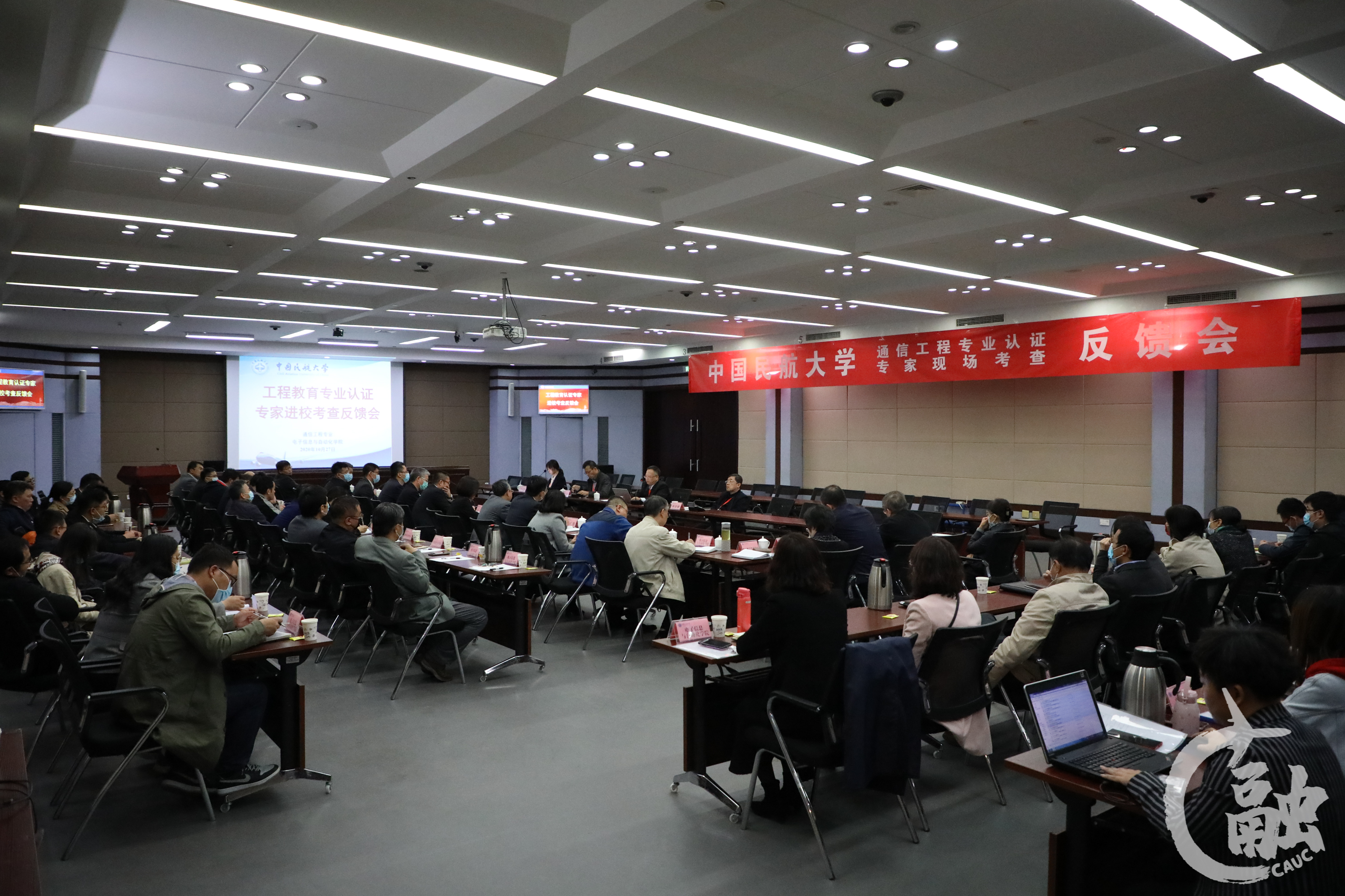 本网讯 10月27日,中国民航大学通信工程专业工程教育认证专家进校考察反馈会在学术交流中心第十会议室召开。专家组组长黎福海及专家组成员,副校长于剑,电子信息与自动化学院以及相关学院、学校相关职能部门负责人参加。