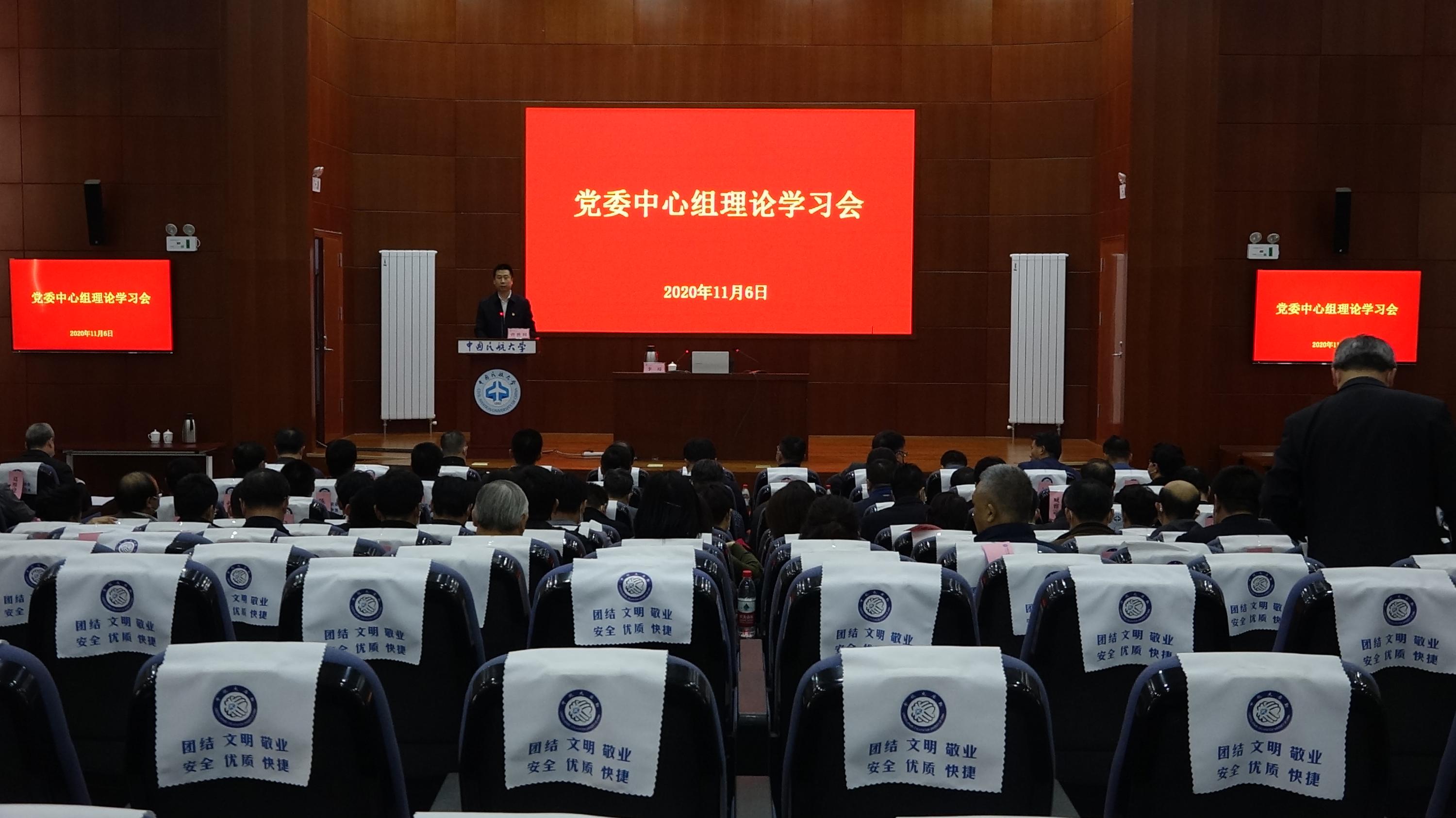 本网讯 11月6日下午,中国民航大学召开校党委理论学习中心组集体学习(扩大)会,邀请天津大学发展战略研究中心领导和专家作辅导报告,深入学习党的十九届五中全会精神。校党委书记曹胜利主持会议,全体处级以上干部140余人参加学习。