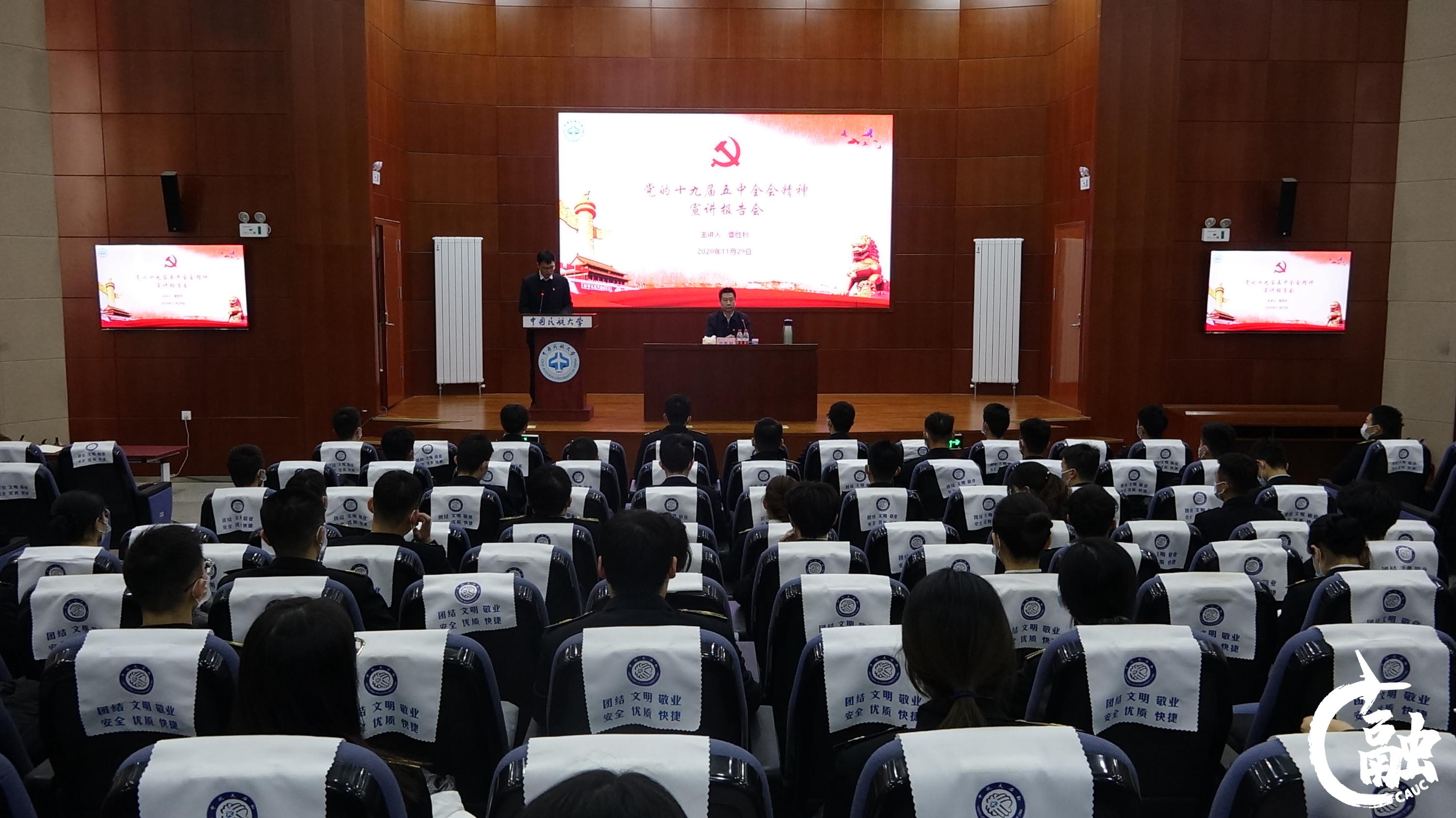 本网讯 11月29日,校党委书记曹胜利为青年学生做贯彻党的十九届五中全会精神宣讲报告,学生党员、入党积极分子等学生骨干150余人聆听报告会。