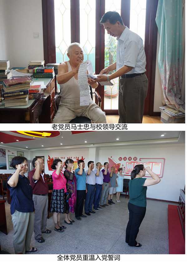 在支部书记座谈会上,离退休党委组织全体党员佩戴党徽、重温入党誓词,各支部书记分别介绍了本支部情况,并针对支部党建工作、学校建设发展以及老干部工作畅谈问题和建议。