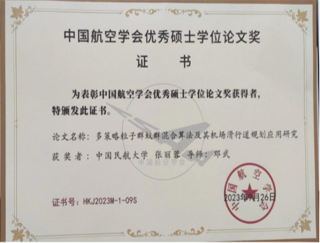 本网讯 近日,2023(第六届)中国航空科学技术大会在乌镇互联网国际会展中心盛大开幕,开幕式上举办了中国航空学会年度颁奖典礼。中国民航大学电子信息与自动化学院教授邓武指导硕士研究生张丽蓉,所著论文《多策略粒子群蚁群混合算法及其机场滑行道规划应用研究》荣获中国航空学会优秀硕士学位论文奖。