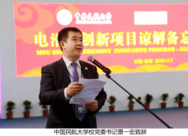 景一宏首先对本次签约仪式的各级各界领导和嘉宾们表示衷心感谢,对三方开启合作新航程致以最诚挚的祝愿,并表示本次签约是进一步深化国际化合作的有益尝试,是促进校企合作、产学研用相融合的具体举措,是加快人才培养、提高科技创新的切实行动。此次电滑行创新项目谅解备忘录的签署,必将进一步促进中航大人才培养能力和科研实力提升。