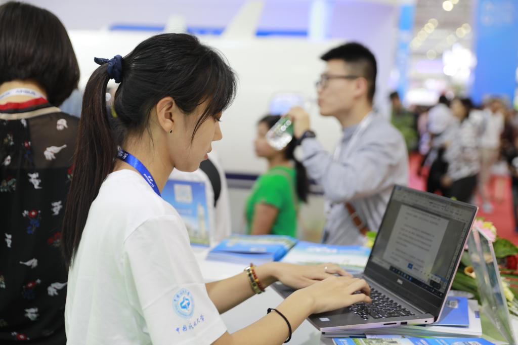 本网讯 11月11日,第十二届珠海航展迎来最后一天。中国民航大学的展台前还有一群人坚守在展台前忙碌着,他们正是珠海航展期间派出执行服务任务的学生志愿者。本次学生媒体志愿者从校园媒体中心中选拔具有融媒体制作经验的学生共4名参与其中。