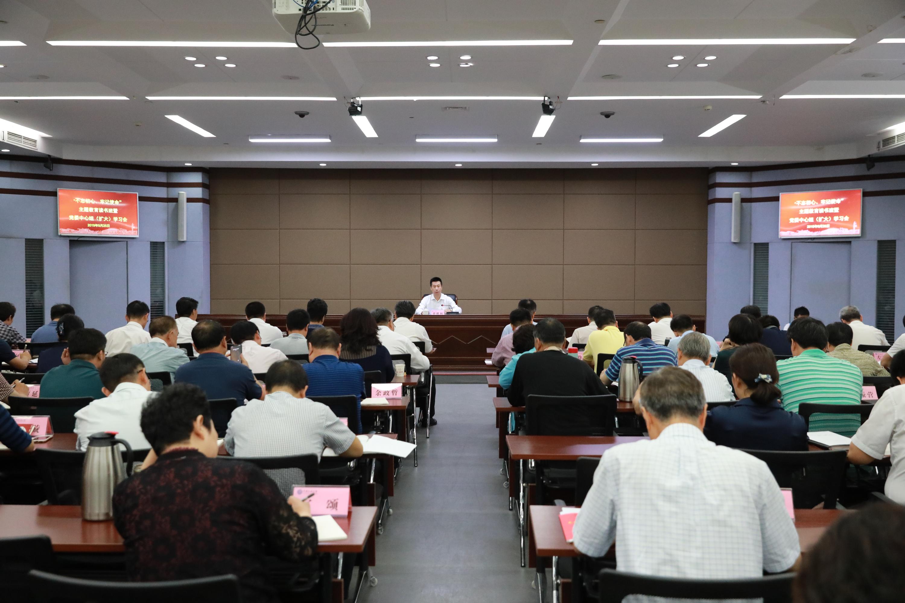本网讯 9月25日上午,中国民航大学“不忘初心、牢记使命”主题教育读书班暨党委中心组(扩大)学习会在学术交流中心第十会议室召开。校党委书记曹胜利以《不忘初心、牢记使命,扎实推动学习贯彻习近平新时代中国特色社会主义思想往深里走往心里走往实里走》为题作党课,强调要切实把主题教育成果转化为坚定理想信念、做好本职工作、推动学校事业高质量发展的生动实践。民航局党组“不忘初心、牢记使命”主题教育第二批巡回指导组组长孙德福、成员周力为到校指导,中国民航大学校领导,校长助理、机关和学院、中心主要负责人参加。