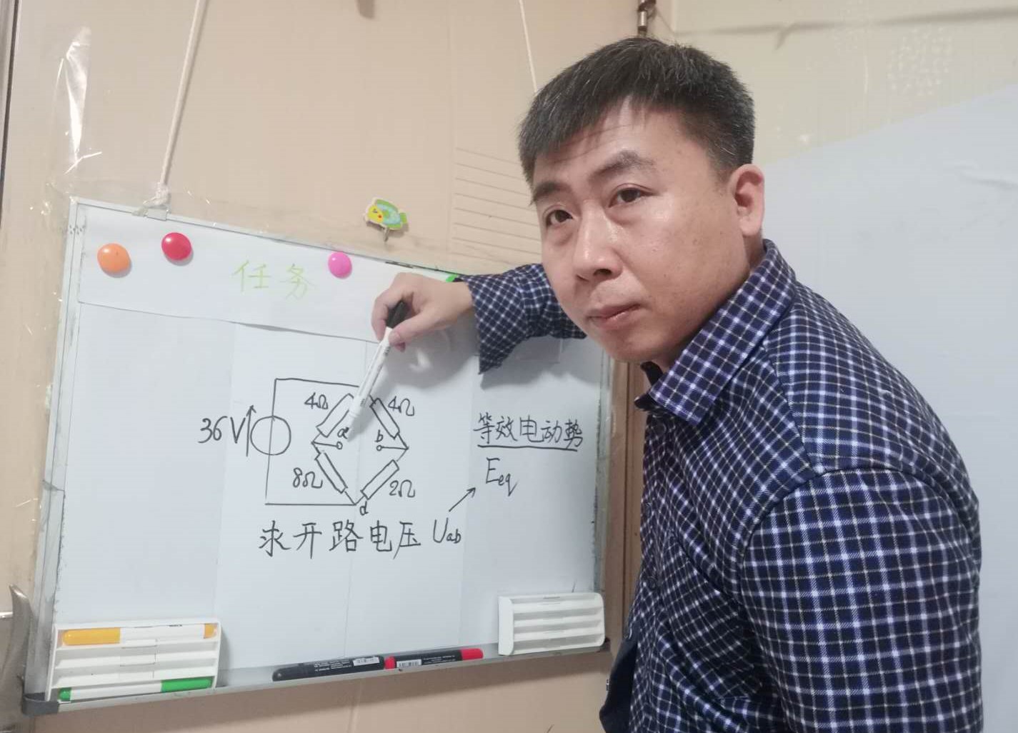 张艳峰在小白板上写板书