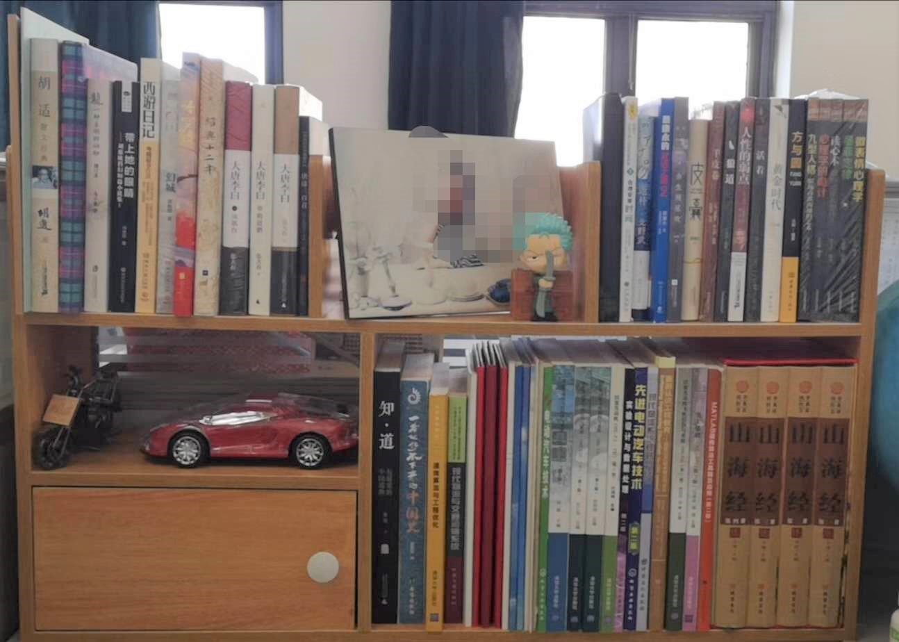 谈斌的书架上摆满各类书籍