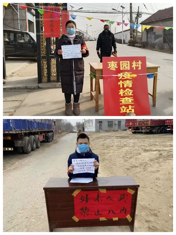 天津市“青马工程”第二期培训班学员、2016级本科生罗倩、2017级研究生刘明学在放假回到家乡后,主动到社区报到,成为防疫志愿者,驻守在村头疫情检查站,一丝不苟的进行人员、车辆登记和人员测温工作。