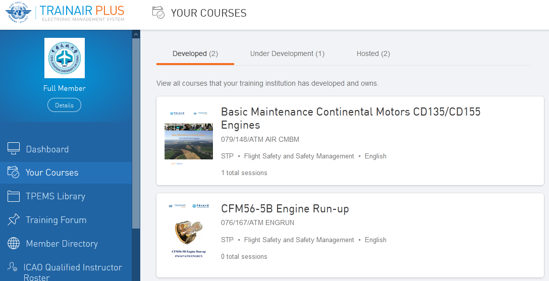 中航大开发的2门全英文标准化课程(ICAO TPeMS系统)