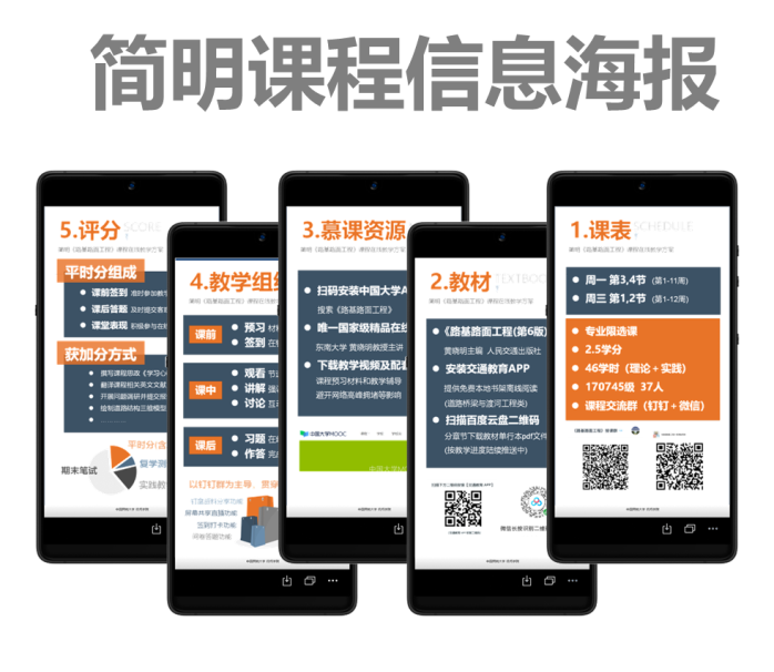 李岳在开课前对线上教学平台功能点逐一对比,制定了符合《路基路面工程(I)》课程特点的“课堂派+钉钉群+慕课资源”组合教学方案,制作了简明课程信息海报方便学生查阅。每次课程结束后还会在“钉钉群”内发布针对本节课内容的教学体验问卷,这些都充分展现出教师课前认真准备和重视课后数据统计的严谨态度。