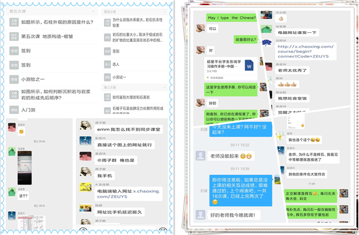 学生冯怡霖表示,老师们讲课仔细认真,幽默风趣。上课过程中穿插着各种互动和随堂小测验,还有一些加分项目,充分调动了同学们的学习积极性。课堂采用学习通同步课堂以及微信讨论配合的方式,能够很好地开展学习活动和讨论交流。 “以前上课就怕被老师点到,现在上网课有种就希望被点到的感觉,有种抽奖抽中的幸运感!而且就算被点到不会,也不会觉得尴尬。”
