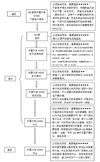 “课中,中国大学生MOOC完成测验,必须完成项目,重要指数五颗星。”机械电子工程系教师张桂昌本学期主讲《机械原理》和《机械设计基础》两门课程。正式开课前,他发布了在线课程指南以及学习流程图,用图表的形式明确学生课前、课中、课后开展学习的项目和流程,还贴心地用星星符号标注了重要指数,让各环节、各项目的学习内容一目了然。每节课程开课前,他还提前发布本科课程的学习指南,介绍学习形式是视频、课件、电子课本、讨论亦或是其他形式,从学什么、为什么学、如何学等方面指导学生学习。根据每节课后的学生反馈显示,张桂昌的方法取得了良好效果,他总结道:“学生更欢迎直播的方式,觉得可以听到老师的讲解,对重点内容的把握比较明确,同时网络视频进度较快,讲解准确。学生对讲解课后习题的热情比较高,显示了一定的求知欲和学习的功利性。”