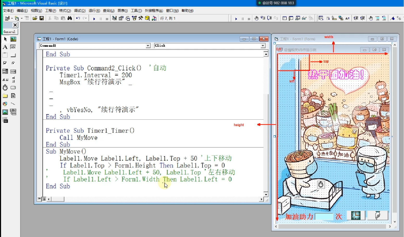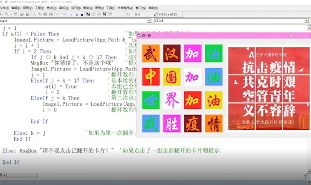 学生基于VB代码开发作品 为武汉加油